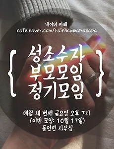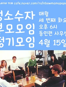 성소수자와 가족/성소수자 부모모임36 '성소수자 부모모임'과 '대학성소수자모임연대 QUV'가 함께 한 "성소수자 자녀를 둔 부모와 함께하는 솔직담백 토크쇼" 대화록 조나단 (행동하는성소수자인권연대 웹진기획팀) 지난 7월 9일 목요일 서강대학교에서 대학생 성소수자 모임과 성소수자 부모모임이 함께하는 토크쇼가 열렸습니다. 가족에게 커밍아웃을 고민하는 대학생들과 성소수자 자녀를 둔 부모님들이 만나 도움을 주고 받기 위해 마련된 자리였습니다. 7시부터 9시 반까지 사회자 모리 외 약 60여명의 참여자와 함께 라운드 테이블 형식으로 토크쇼가 진행되었습니다. 주요 참여자 소개 지인: 3년 전 커밍아웃을 한 대학생 게이의 어머니 산지기: 사회자 모리(20대 후반)의 아버지 무애: 1년 전 커밍아웃을 한 17살 게이의 어머니 해인: 조카가 성소수자인 이모 라라: 작년에 딸 정체성을 안21살 MTF트랜스젠더의 어머니 하늘엄마: 7년 전 정체성을 알게 된 게이의 어머니 여미을: 게이.. 2015. 7. 14. 성소수자 부모모임 열네 번째 정기모임 대화록 성소수자 부모모임 소개 한국 사회에서 동성애자와 트랜스젠더를 비롯한 성소수자들이 가시화되면서 자녀가 성소수자라는 사실을 알게 되는 부모도 늘고 있습니다. 성소수자 부모모임은 자녀의 성정체성을 알게 되어 고민하고 있는 부모님들의 모임입니다. 서로의 이야기를 듣고, 공감하고, 서로 위로하기도 하며 어디에서도 말할 수 없었던 고민을 털어놓을 수 있습니다. 악화된 자녀와의 관계에 대해, 신앙과의 갈등에 대해, 자녀의 미래에 대한 걱정에 대해, 어떤 고민이든 이야기할 사람이 있다는 건 소중한 일이니까요. 네이버 카페: http://cafe.naver.com/rainbowmamapapa/ 성소수자 부모모임 열네 번째 정기모임 대화록 일시: 5월 9일 토요일 7시 장소: 서울 마포구 동인련 사무실 참석: - 지인: .. 2015. 6. 19. 성소수자 부모모임 열세 번째 정기모임 대화록 성소수자 부모모임 소개 한국 사회에서 동성애자와 트랜스젠더를 비롯한 성소수자들이 가시화되면서 자녀가 성소수자라는 사실을 알게 되는 부모도 늘고 있습니다. 성소수자 부모모임은 자녀의 성정체성을 알게 되어 고민하고 있는 부모님들의 모임입니다. 서로의 이야기를 듣고, 공감하고, 서로 위로하기도 하며 어디에서도 말할 수 없었던 고민을 털어놓을 수 있습니다. 악화된 자녀와의 관계에 대해, 신앙과의 갈등에 대해, 자녀의 미래에 대한 걱정에 대해, 어떤 고민이든 이야기할 사람이 있다는 건 소중한 일이니까요. 네이버 카페: http://cafe.naver.com/rainbowmamapapa/ 성소수자 부모모임 열세 번째 정기모임 대화록 일시: 4월 11일 토요일 7시 장소: 서울 마포구 동인련 사무실 참석: - 지인:.. 2015. 6. 19. 성소수자 부모모임 열한 번째 정기모임 대화록 성소수자 부모모임 소개 한국 사회에서 동성애자와 트랜스젠더를 비롯한 성소수자들이 가시화되면서 자녀가 성소수자라는 사실을 알게 되는 부모도 늘고 있습니다. 성소수자 부모모임은 자녀의 성정체성을 알게 되어 고민하고 있는 부모님들의 모임입니다. 서로의 이야기를 듣고, 공감하고, 서로 위로하기도 하며 어디에서도 말할 수 없었던 고민을 털어놓을 수 있습니다. 악화된 자녀와의 관계에 대해, 신앙과의 갈등에 대해, 자녀의 미래에 대한 걱정에 대해, 어떤 고민이든 이야기할 사람이 있다는 건 소중한 일이니까요. 성소수자 부모모임 열한 번째 정기모임 대화록 일시: 2월 14일 화요일 4시 장소: 서울 마포구 동인련 사무실 참석: - 지인: 게이 아들을 둔 어머니 - 산지기: 게이 아들을 둔 아버지 - 오소리: 양성애자(가.. 2015. 4. 12. [2015 LGBTI 인권포럼] 성소수자와 성소수자를 자녀로 둔 부모 간의 솔직담백 토크 대화록 조나단(행동하는 성소수자인권연대 웹진기획팀) 글쓴이 주: 는 지난 3월 22일 ‘2015 LGBTI 인권포럼’의 두번째 섹션에 진행되었습니다. 100명 넘게 사람들이 모였고, 동그란 원 형태로 앉아 이야기를 나누었는데요. 시작에 앞서 자녀나 가족이 커밍아웃을 한 이후에 가족들이 그것을 받아들이는 과정에 대해 설명한 해외 번역 자료를 간략히 설명했습니다. 이어, 성소수자 자녀를 둔 어머니들과 성소수자 당사자 몇몇이 자신을 소개했고, 이곳에서 어떤 이야기를 나누고 싶은지 말하며 본격적으로 시작되었습니다. 많은 분들이 토크에 참여했고 다양한 이야기가 오갔기 때문에, 이 글에서 참여자 소개는 생략했으며 독자의 편의를 위해 나누었던 이야기들을 몇 가지 단락으로 묶었습니다. 사회자의 멘트는 굵게 볼드 처리, 어머니.. 2015. 4. 9. 2015 LGBTI 인권포럼 "성소수자와 성소수자를 자녀로 둔 부모 간의 솔직담백 토크"에 초대합니다! 오소리(행동하는성소수자인권연대 웹진기획팀) 이번 2015 LGBTI 인권포럼에서 성소수자 부모모임이 '성소수자와 성소수자를 자녀로 둔 부모 간의 솔직담백 토크' 이야기방을 엽니다. 성소수자 당사자와 성소수자를 자녀로 둔 부모님들이 자유롭게 대화할 수 있는 자리를 마련하였습니다. 누구든 와서 참여할 수 있으니 많은 분들의 참여 부탁드립니다. ^^ 날짜: 3월 22일 일요일 오후 1시~3시 장소: 서강대학교 김대건관 K201호 성소수자와 성