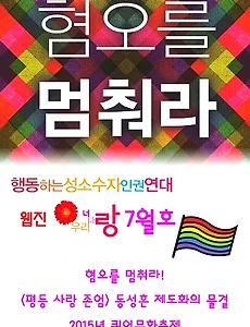 웹진 과월호103 행동하는성소수자인권연대 웹진 랑 2016년 10월호 편집장의 글[편집장의 글] 가시화와 커밍아웃오소리(행동하는성소수자인권연대 웹진기획팀) 지난 9월 23일은 바이섹슈얼 가시화의 날이었습니다. 다가오는 10월 23~29일은 무성애 가시화 주간이기도 합니다. 가시화의 날이나 주간이 있다는 사실은, 해당 정체성들이 그만큼 타 정..행성인 활동/웹진기획팀 편집장의 글2016.10.11가시화와 커밍아웃지금 이 순간 바이로 사는 우리들을 위해성적지향 · 성별정체성 2016.09.23무성애 가시화 주간 기획①-동성로맨틱 무성애자성적지향 · 성별정체성/무성애 2016.10.09무성애 가시화 주간 기획②-오토코리섹슈얼성적지향 · 성별정체성/무성애 2016.10.09무성애 가시화 주간 기획③-반성애성적지향 · 성별정체성/무성애 2016.10.09가시화와 커밍아웃‘여성성소수.. 2016. 10. 14. 행동하는성소수자인권연대 웹진 랑 2016년 9월호 편집장의 글[편집장의 글] 추석오소리(행동하는성소수자인권연대 웹진기획팀) 어느덧 무더운 여름이 지나가고 선선한 가을이 찾아왔습니다. 높고 푸르른 가을 하늘은 훌쩍 여행을 떠나고 싶게 만드네요. 어김없이 가을이 찾아 왔듯 행성인 웹진도 8월 휴재를 마치고..행성인 활동/웹진기획팀 편집장의 글2016.09.03추석[추석-커밍아웃] 추석, 없던 오지랖도 발동하는 마법의 그 날성소수자와 가족/명절과 가족 2016.09.03[추석-커밍아웃] 용기를 싹틔우는 첫걸음성소수자와 가족/명절과 가족 2016.09.03[추석-커밍아웃] 커밍아웃한 성소수자인 나, 추석이 지긋지긋하다성소수자와 가족/명절과 가족 2016.09.03[추석-커밍아웃] 추석을 커밍아웃하다성소수자와 가족/명절과 가족 2016.09.04[추석-커밍아웃].. 2016. 9. 5. 행동하는성소수자인권연대 웹진 랑 2016년 7월호 편집장의 글[편집장의 글] 쉼오소리 (행동하는성소수자인권연대 웹진기획팀) 무더운 날씨만큼이나 6월에 있었던 서울과 대구 퀴어문화축제의 열기는 여전합니다. 퀴어문화축제를 절정으로 숨 가빴던 상반기가 지나고 여행과 휴가의 계절이 돌아왔습니다. 하반기에..행성인 활동/웹진기획팀 편집장의 글2016.07.02여행 / 휴가[나만의 여행 계획] 겨울의 여름탈출 여행 계획회원 이야기/회원 에세이 2016.07.02[나만의 여행 계획] 걷기 좋은 여름 여행지회원 이야기/회원 에세이 2016.07.02[나만의 여행 계획] 밤에 뛰쳐 나가기 좋은 서울 여행지회원 이야기/회원 에세이 2016.07.02여름휴가 때 보면 좋을 퀴어 영화/드라마 베스트 4먕 (행동하는성소수자인권연대 웹진기획팀) 휴가철이 다가왔지만 누구나 산 넘.. 2016. 7. 4. 행동하는성소수자인권연대 웹진 랑 2016년 6월호 퀴어퍼레이드2016년 퀴어퍼레이드를 맞이하며- Action Live! 성소수자의 권리와 존엄을 위해 행동하자! 차별과 혐오에 맞서 함께 행진하자!인권소식/퀴어퍼레이드 2016.06.04퀴어문화축제 지침영상인권소식/퀴어퍼레이드 2016.06.04퀴어문화축제의 다양성, 그리고 BTAIQ인권소식/퀴어퍼레이드 2016.06.04무지개 문화읽기세상은 그냥 계속될 겁니다. 그럼에도 불구하고- 미국의 동성결혼 법제화 1년 이후 LGBT와 대중사회에는 어떤 변화가 생겼을까?인권소식 2016.06.04회원이야기 / 커뮤니티[회원인터뷰] 가슴 속 품고 있는 날개를 펼쳐라 - 노동절 드랙의 주인공, 루카를 만나다!회원 이야기/회원 인터뷰 2016.06.04내가 나로 있을 수 있는 안전한 공동체 - 섬돌 교인들과의 수다회성소.. 2016. 6. 8. 행동하는성소수자인권연대 웹진 랑 2016년 5월호 5월 - 아이다호 / 성소수자 혐오아이다호 데이를 맞아 다시 생각해보는 전환치료성소수자 차별/혐오 2016.05.07가십과 혐오 사이, 종편발 반동성애 찌라시 - TV조선 ‘동성애 시리즈 보도’에 부쳐성소수자 차별/혐오/동성애 혐오 2016.05.085월 - 가정의 달성소수자 가족구성권 보장을 위한 네트워크 (이하 가구넷) 세미나를 듣고성소수자와 가족 2016.05.07성소수자는 독립의 꿈을 꾸는가성소수자와 가족 2016.05.08아들의 커밍아웃, 그 후성소수자와 가족 2016.05.07무성애자에게 연애와 결혼이란, 그리고 퀴어 플라토닉 관계성적지향 · 성별정체성/무성애 2016.05.085월 - 노동절 / 회원이야기행성인 노동절 피켓으로 보는 성소수자노동권 이슈들성소수자와 노동 2016.05.07[회원.. 2016. 5. 13. 행동하는성소수자인권연대 웹진 랑 2016년 4월호 성소수자 / 장애[성소수자와 장애] 기획의 글- 반짝반짝 서로를 비추는 성소수자와 장애의 이상한 커넥션연대 2016.04.10[성소수자와 장애] 트랜스젠더와 장애, 정상/비정상적인 몸성적지향 · 성별정체성/트랜스젠더 2016.04.10[성소수자와 장애] 그들이 생각하는 무성애성적지향 · 성별정체성/무성애 2016.04.11[성소수자와 장애] HIV/AIDS감염인의 장애인 등록을 위한 '첫 걸음'HIV/AIDS 2016.04.11[성소수자와 장애] 정신질환과 성소수자성소수자와 건강 2016.04.10[성소수자와 장애] 회색지대에 있는 사람들성소수자와 건강 2016.04.10420 장애인차별철폐투쟁의날 맞이, 자립생활의 봄을 맞이하는 그녀와의 이야기인권소식/국내 인권소식 2016.04.10청소년 성소수자미숙.. 2016. 4. 11. 행동하는성소수자인권연대 웹진 랑 2016년 3월호 2016 행동하는성소수자인권연대아래로부터의 연대에 기반한 성