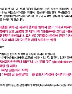 혐오32 동인련 긴급회원토론 - 혐오세력에 어떻게 맞설 것인가 오소리 (동성애자인권연대) 이번 제15회 서울퀴어문화축제 퍼레이드(이하 퀴퍼)는 성소수자 혐오세력들의 얼굴을 직접 대면한 자리이기도 했다. 퍼레이드공간에 반대집회를 허가 낸 서대문구청의 이중성을, 행렬을 가로막는 혐오세력을 수수방관한 경찰들의 위선을 확인할 수 있었던 시간이기도 했다. 하지만 우리는 노골적인 조롱과 반대에 굴하지 않고 저마다의 방식으로 목소리를 냈다. 본의 아니게 퍼레이드는 늦은 시간이 되어서야 끝났다. 밤 11시가 넘도록 거리에 모여 함께 외쳤던 분노와 기쁨의 목소리를, 길바닥에 쏟아낸 땀과 눈물을, 억압과 혐오를 벗어던진 우리의 몸들을 기억해야 한다. 퀴퍼 이후 뉴스와 SNS에서는 저마다의 정리와 감상, 평가와 비판, 적지 않은 쟁점들이 오갔다. 온라인에 올라온 수다한 글들은 퍼레이드.. 2014. 7. 17. 6월 4일 세월호 참사를 잊지 말고 인권과 존엄, 안전을 위해 혐오에 맞서 투표합시다! 6.4지방선거가 열흘 앞으로 다가왔습니다. 세월호 참사가 일어난 지 40일이 지났지만 슬픔과 좌절, 분노가 여전히 가슴을 먹먹하게 합니다. 여전히 돌아오지 못한 실종자 16명이 하루 빨리 사랑하는 이들의 품으로 돌아오길 기원합니다. 또한 제대로 된 진상규명을 통해 책임 소재를 낱낱이 밝히고 다시는 이런 비극이 되풀이되지 않기를 바랍니다. 이윤이 사람보다 먼저인 세상을 바꿔야 합니다. 정부와 정치권은 책임회피와 허울뿐인 대책으로 일관하며 사람들이 이 비극을 잊기만을 바라는 모습입니다. 유가족들의 절규와 시민들의 분노를 억누르기에 급급한 작금의 사태를 보며 분노와 통탄을 금할 길이 없습니다. 부조리한 혐오와 차별로 숱한 친구들을 잃은 우리들은 불평등한 사회를 바꾸고 정의를 바로세우는 일이야말로 진정한 애도라.. 2014. 5. 26. 러시아와 포스트 소비에트 공간의 HIV/AIDS 종원 (동성애자인권연대 웹진기획팀) 러시아의 유명 록커로 성소수자들 사이에서 특히 인기가 많은 Земфира(젬피라)가 1999년도에 발표한 ‘СПИД(에이즈)’란 노래의 뮤직비디오다. 이 히트송의 후렴은 다음과 같은 문구를 반복한다. “너는 에이즈에 걸렸어, 그러니까 우리는 죽을 거야…” 같은 해에 러시아의 몇몇 에이즈 활동가들은 ‘유로 퀼트 투어(ЕвроКвилтТур)’를 조직했다. ‘에이즈 메모리얼 퀼트(AIDS Memorial Quilt)’는 고인이 된 에이즈 감염인들의 이름과 삶을 기념하기 위해 꾸민 퀼트 패널로, 샌프란시스코에서 시작되어 거대한 국제 프로젝트가 됐다. 1999년에 동구권의 활동가들은 러시아 전역의 9개 도시뿐 아니라 우크라이나, 벨라루스, 라트비아, 폴란드를 순회하며 에이즈 .. 2014. 5. 26. 국립국어원은 누구도 차별하지 않는 평등한 한국어를 만들라! 학기자 (동성애자인권연대 웹진기획팀) 많은 사람들이 알다시피 2014년 1월 국립국어원이 의 '사랑'의 뜻을 이성애적으로 재개정했다. 보다 포괄적이고 평등하게 정의되어 있던 '사랑'의 뜻을 퇴행적으로 개정한 것이다. (인용하고 싶지는 않지만 국립국어원에 따르면 퇴행의 뜻은 "시간적으로 현재보다 앞선 시기의 과거로 감"이다. 말 그대로 국립국어원의 행태는 보이지도 않는 까마득한 먼 과거로 가는 것이다!) 당연히 이런 국립국어원의 퇴행에 대해서 많은 사람들이 분노했다. 사랑의 뜻에서 배제된 성소수자들과 성소수자 인권을 지지하는 사람들은 물론 합리적인 시민들은 국립국어원을 비판하고 재개정 철회를 요구하고 있다. 성소수자 인권단체들은 지난 4월부터 사랑의 뜻풀이 재개정 철회 서명운동을 벌여 5천명 넘는 시민들이.. 2014. 5. 26. [HIV/AIDS 월간 세미나] 혐오의 논리 - 동성애와 에이즈 동인련 HIV/AIDS인권팀은 2014년 4월부터 매달 1회씩 세미나를 진행하고 있습니다. 그 첫 번째 주제는 ‘동성애와 에이즈 혐오’입니다. 세미나는 두 개의 발제와 논의들로 구성됩니다. 먼저 웅의 는 동성애와 에이즈를 두루 엮는 혐오의 논리를 개관합니다. 그리고 재성의 는 근래 한국사회 에이즈와 동성애혐오발언과 캠페인을 바탕으로 분석을 시도합니다. 여기에 두 편의 발제문을 다듬어 기고합니다. 웅(동성애자인권연대 HIV/AIDS 인권팀) 질병의 은유 HIV/AIDS는 발견되기 직후부터 과장된 단어들로 수식되어왔다. 단적인 예가 ‘숙명론’적인 묘사이다. 이른바 의학이 역병을 지배할 수 있는 완성단계에 이르기 직전 에이즈가 창궐했다는 것이다. 또는 스톤월항쟁 이후 정치적 역량을 키워온 성소수자 커뮤니티에서.. 2014. 4. 30. [HIV/AIDS 월간 세미나] 호모포비아 광고에서 발견되는 혐오 수사와 그 정점의 AIDS 동인련 HIV/AIDS인권팀은 2014년 4월부터 매달 1회씩 세미나를 진행하고 있습니다. 그 첫 번째 주제는 ‘동성애와 에이즈 혐오’입니다. 세미나는 두 개의 발제와 논의들로 구성됩니다. 먼저 웅의 는 동성애와 에이즈를 두루 엮는 혐오의 논리를 개관합니다. 그리고 재성의 는 근래 한국사회 에이즈와 동성애혐오발언과 캠페인을 바탕으로 분석을 시도합니다. 여기에 두 편의 발제문을 다듬어 기고합니다. 재성(동성애자인권연대 HIV/AIDS 인권팀) 2010년, 드라