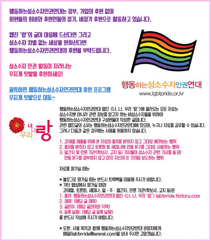 | 우리는 퀴어문화축제에 반대하는 서울시 공무원을 반대해야 하나? (0) | 2019.05.08 |