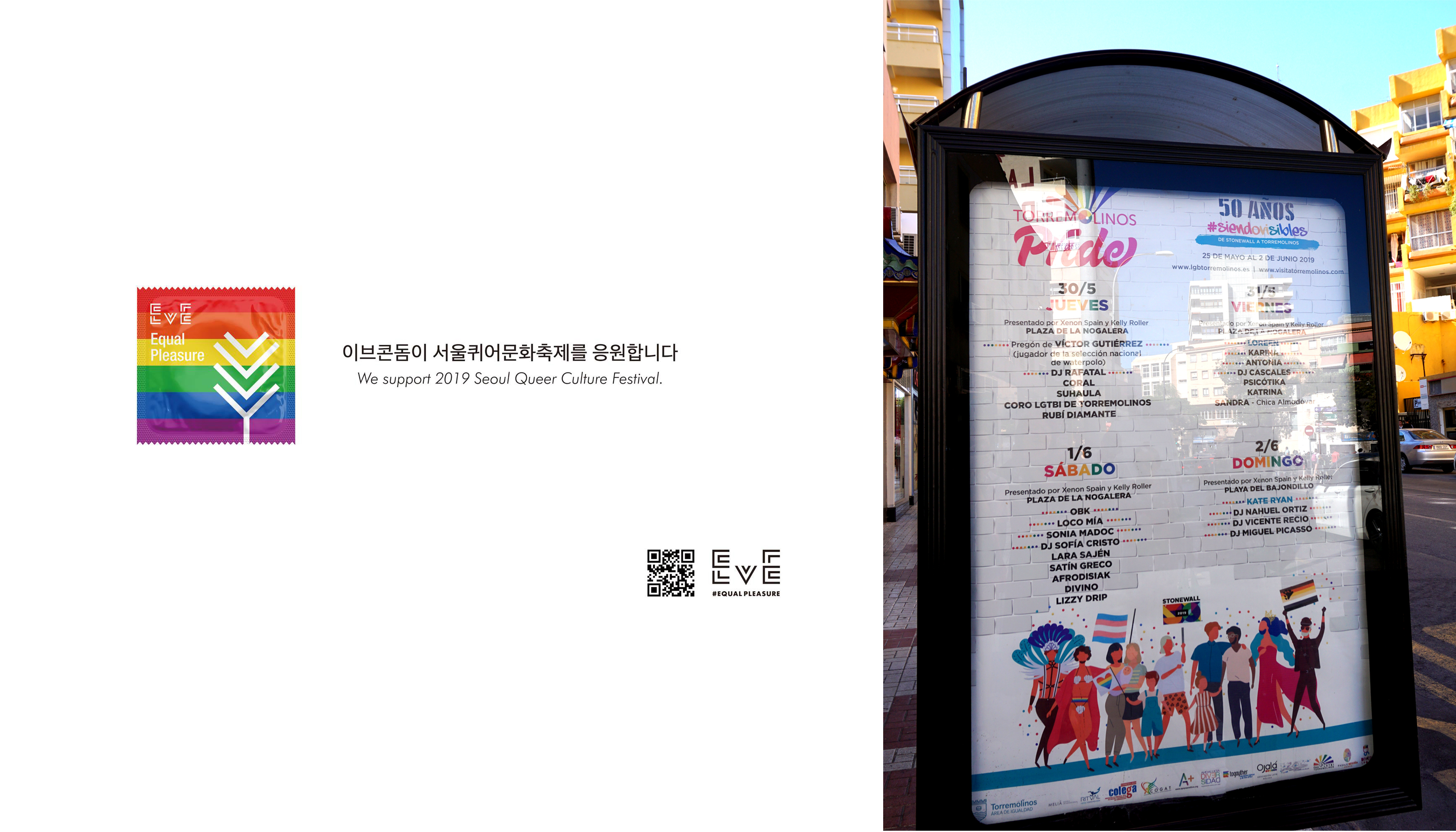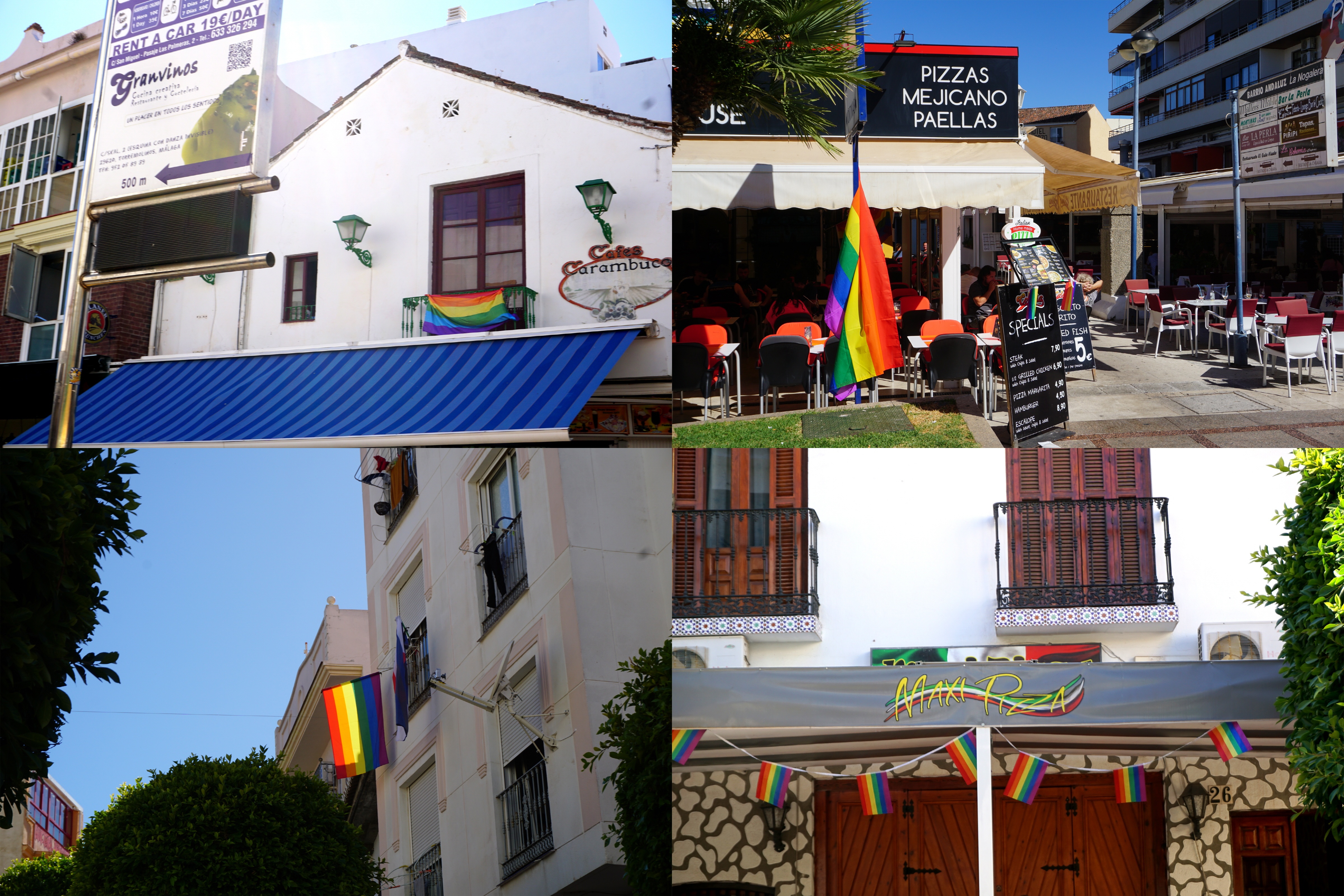 토레몰리노스의 프라이드는 온 도시가 하나 되어 참여하고 즐기는 분위기였는데, 그런 감상은 몇 가지 포인트가 큰 영향을 주었다. 먼저 무대 행사가 열린 광장 주변은 물론, 도시 전체에 걸린 무지개였다. 토레몰리노스 뿐만 아니라 스페인은 어느 도시이던 거리에서 심심치 않게 무지개깃발을 볼 수 있었는데, 토레몰리노스에서는 가게이든 일반 가정집이든 걸려 있는 무지개가 워낙 많다보니, 처음에는 신나서 사진을 찍어대다가 나중에는 별 감흥을 못 느낄 정도였다. 심지어 식당 종업원들이 프라이드 그림이 들어간 단체티를 입고 영업하는 곳도 있을 정도였으니 말이다. 얼마 전 한국에서는 서울퀴어문화축제를 응원하는 내용이 담긴 기업 ‘이브콘돔’의 지하철 광고가 서울교통공사 측 심의에서 ‘청소년 보호 선도 방해’라는 이유로 게재되지 못 했다고 하는데, 토레몰리노스 버스 정류장에는 프라이드 광고가 대문짝만하게 걸려 있기도 했다.