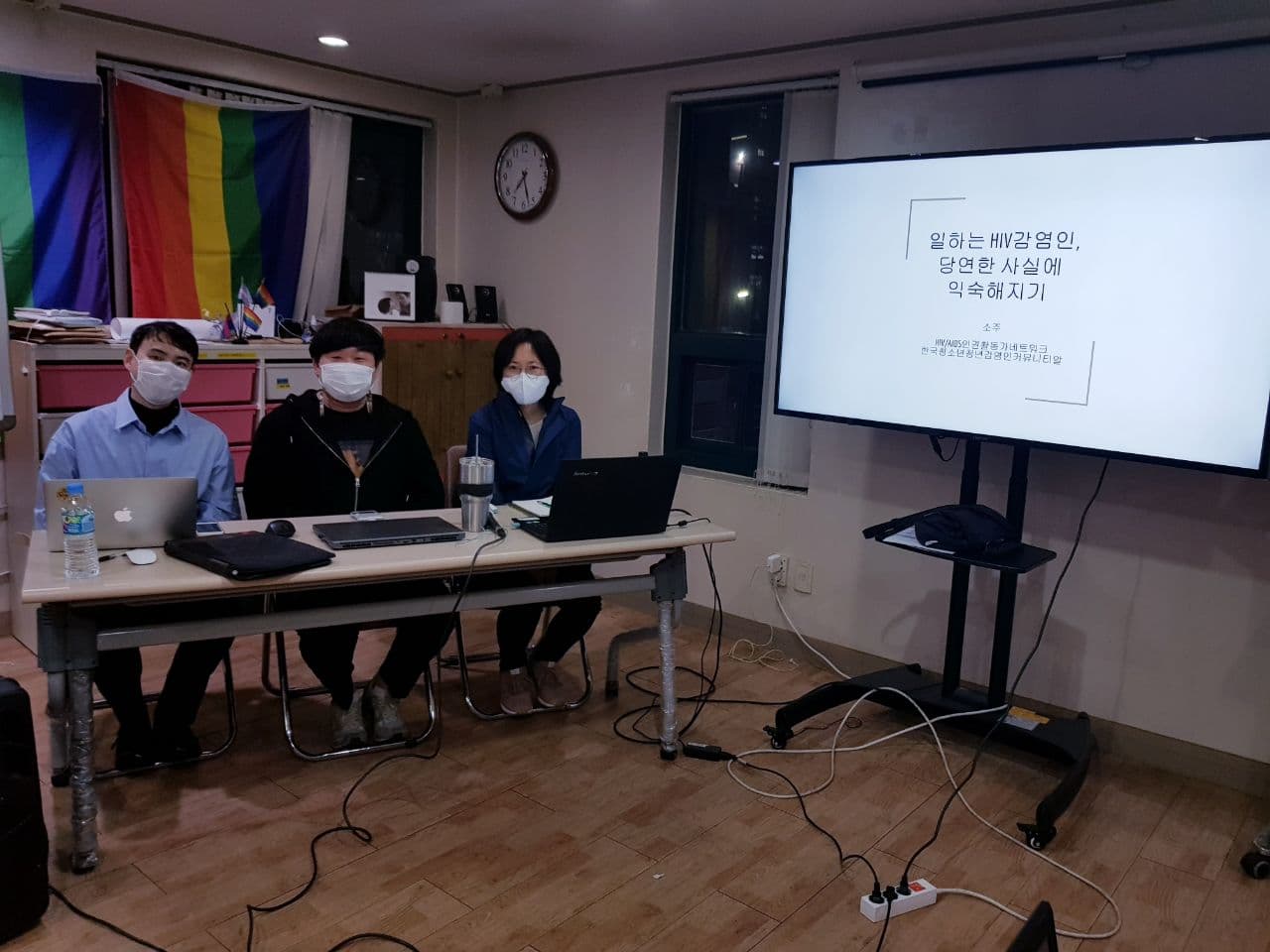 이렇게 현재의 제약과 가능성을 검토하고 나니, 앞으로의 운동에 대한 생각도 많아졌다. 감염인 커뮤니티의 안과 밖에서 더 많이 외치고 감각을 바꿔나가자는 제안이 있었다. HIV 친화적인 직장을 만들고, 감염인 동료를 상상하자는 제안과 요구를 시작할 때다. 이 과정에서 성소수자 노동자들이 가장 먼저 감염인 노동자들의 동료가 되기를 요청드린다. 아마 소중한 의료적 개인정보를 미리 말해야 할 필요는 없겠지만(또한 없길 바라지만), 혹시나 알게 되더라도 변함없는 직장 동료로 함께하기를 기대한다. 사실 누가 감염인인지 잘 모르고 알 필요도 없다. 하지만 오늘 이야기를 나누면서 나부터가 감염인의 직장 동료가 되고 싶어졌다. 아, 이미 그러고 있을지도 모르겠다.
