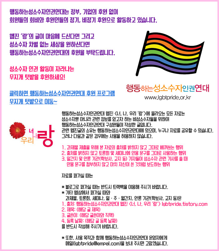 | [나, 성소수자 노동자 ①] 저는 공공기관에서 노동하는 레즈비언 노동자입니다 (0) | 2021.12.22 |
