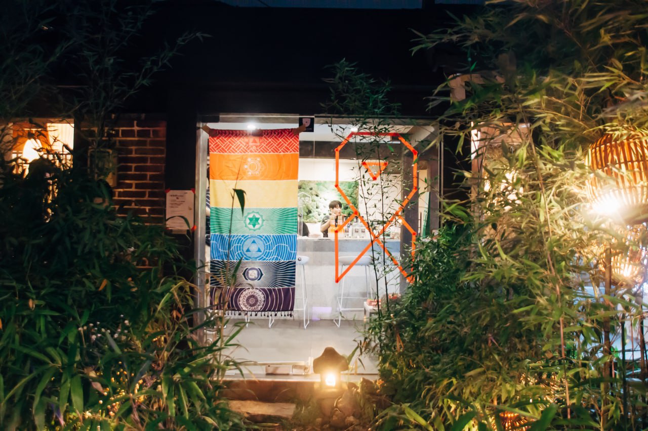 늦은 밤 진행하는 만큼 남다른 기획이 필요합니다. 네트워크에 마련된 공간은 '청수당 스파'였는데요. 오랜 골목어귀에 마련된 스파샵 입구에 들어서면 연못이 나오고 징검다리를 건너 좁은 복도를 지나면 다른 공간에 온 것처럼 조용한 대기에 휩싸이는 공간입니다. 대나무로 빼곡한 중정 주변으로 스파를 받을 수 있는 방들이 배치된 한옥의 풍경은 제법 아늑한 분위기를 풍깁니다.