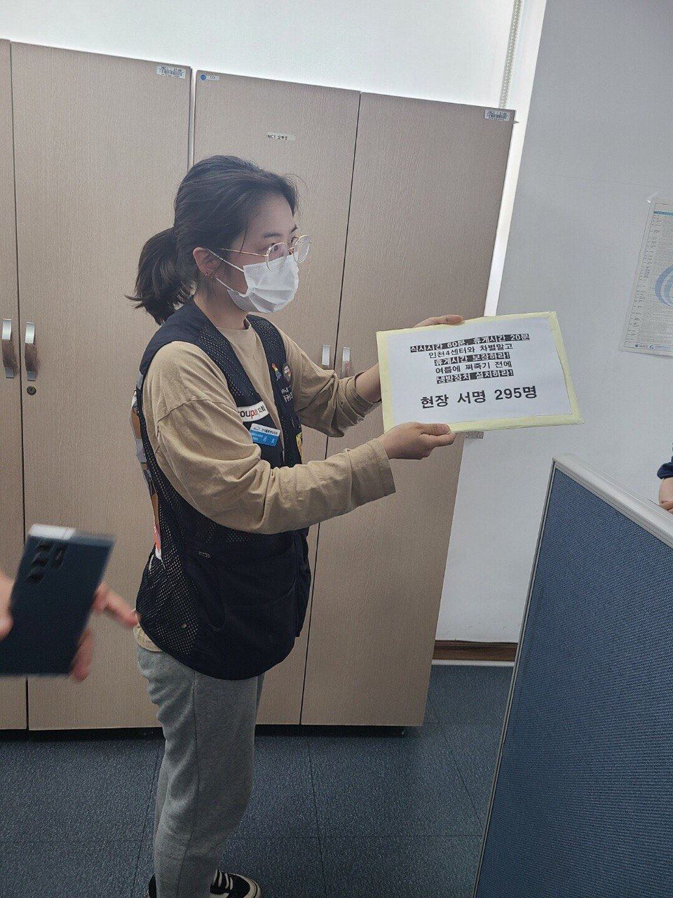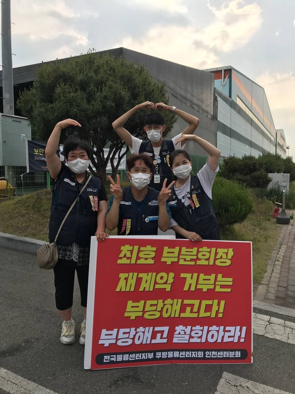 🔥최효 동지: 물류센터가 진짜 덥거나 춥거든요. 여러 미디어에서는 쿠팡 물류센터가 굉장히 쾌적한 것처럼 나오지만 일부 물류센터만 그렇습니다. 그래서 쾌적한 일터를 만들기 위한 투쟁을 하고 있어요. 에어컨과 휴게시간 보장을 요구하는 서명운동을 벌였는데요, 서명부를 전달하며 일주일 뒤에 냉방장치 설치와 휴게시간 보장에 대한 회사의 계획안을 제출하라고 했지만, 회사는 약속한 날 계약만료 통지서를 내밀었습니다. 저처럼 노동조합 활동하다가 부당해고 당한 사람들과 함께 복직 투쟁도 하고 있어요. 해고 이후에도 에어컨 설치를 요구하기 위해 에어컨을 들고 50km를 걸었어요. 노동조합의 투쟁으로 실내 작업장으로 분류되는 물류센터에도 온열 질병 예방을 위한 휴게시간을 쟁취하기도 했습니다. 최근에 기쁜 소식으로는 지난 8월 3일에 해고 사유 중 하나였던 사내 징계에 대해 부당 징계를 인정받은 것이 있습니다.