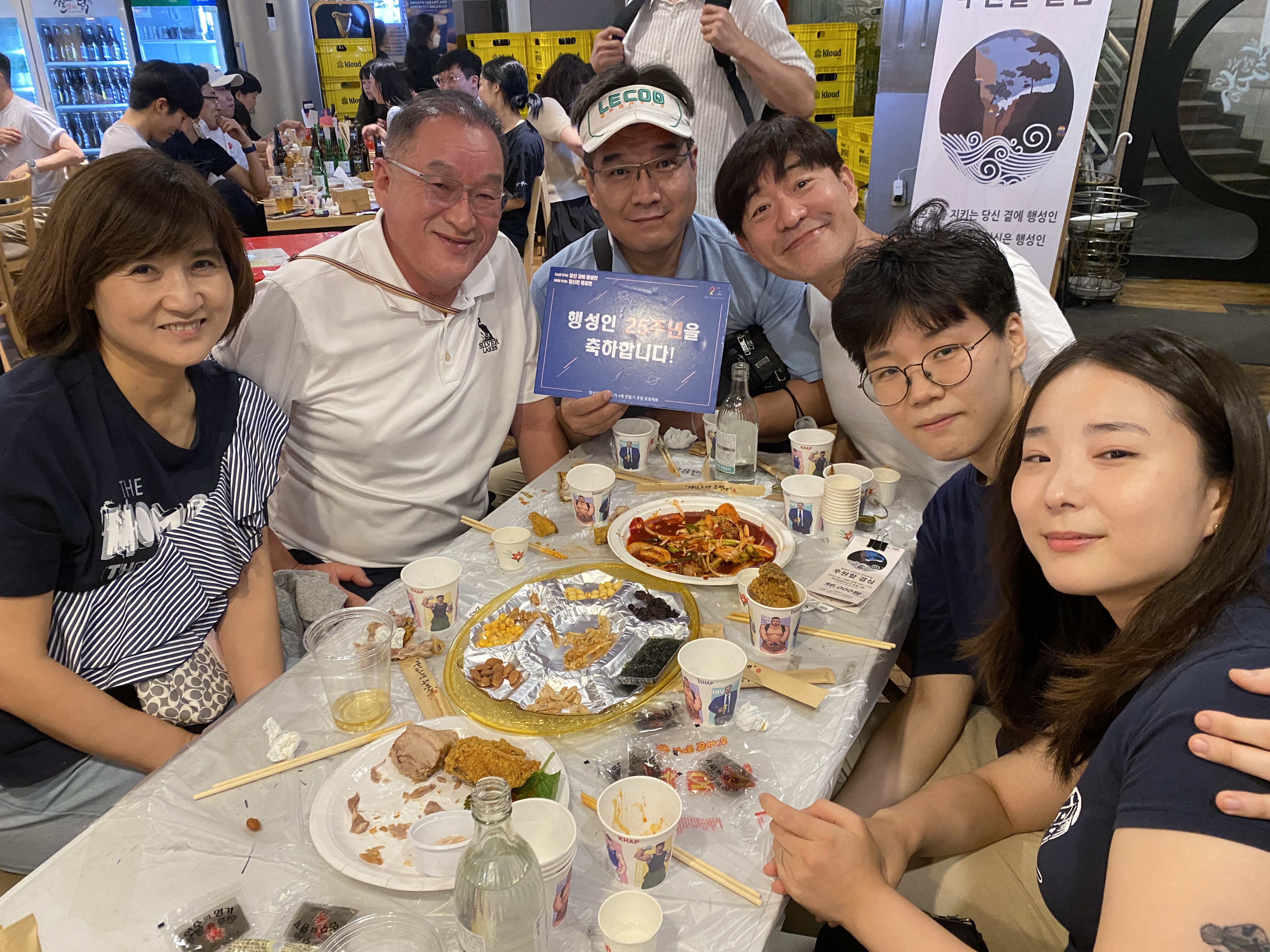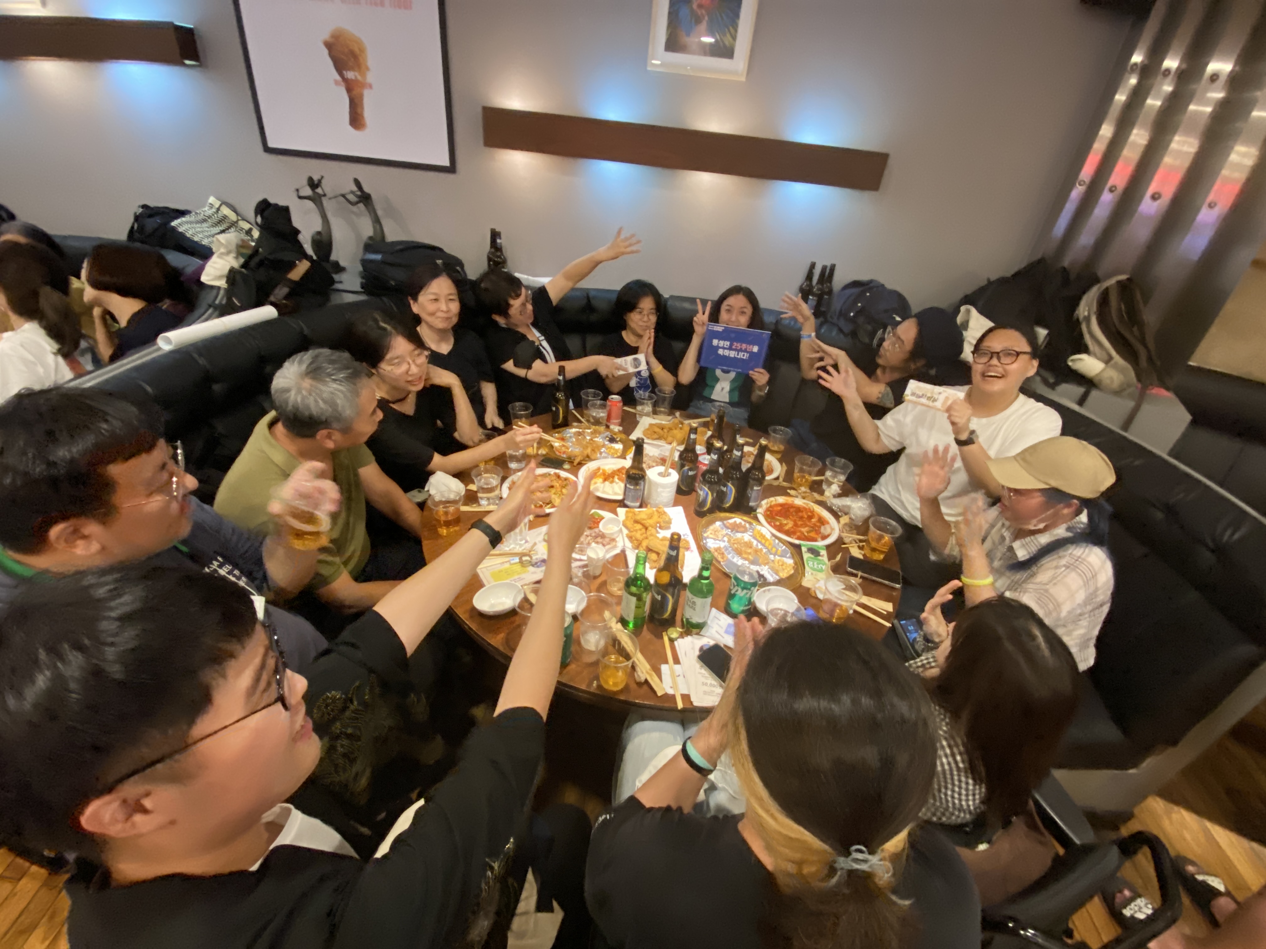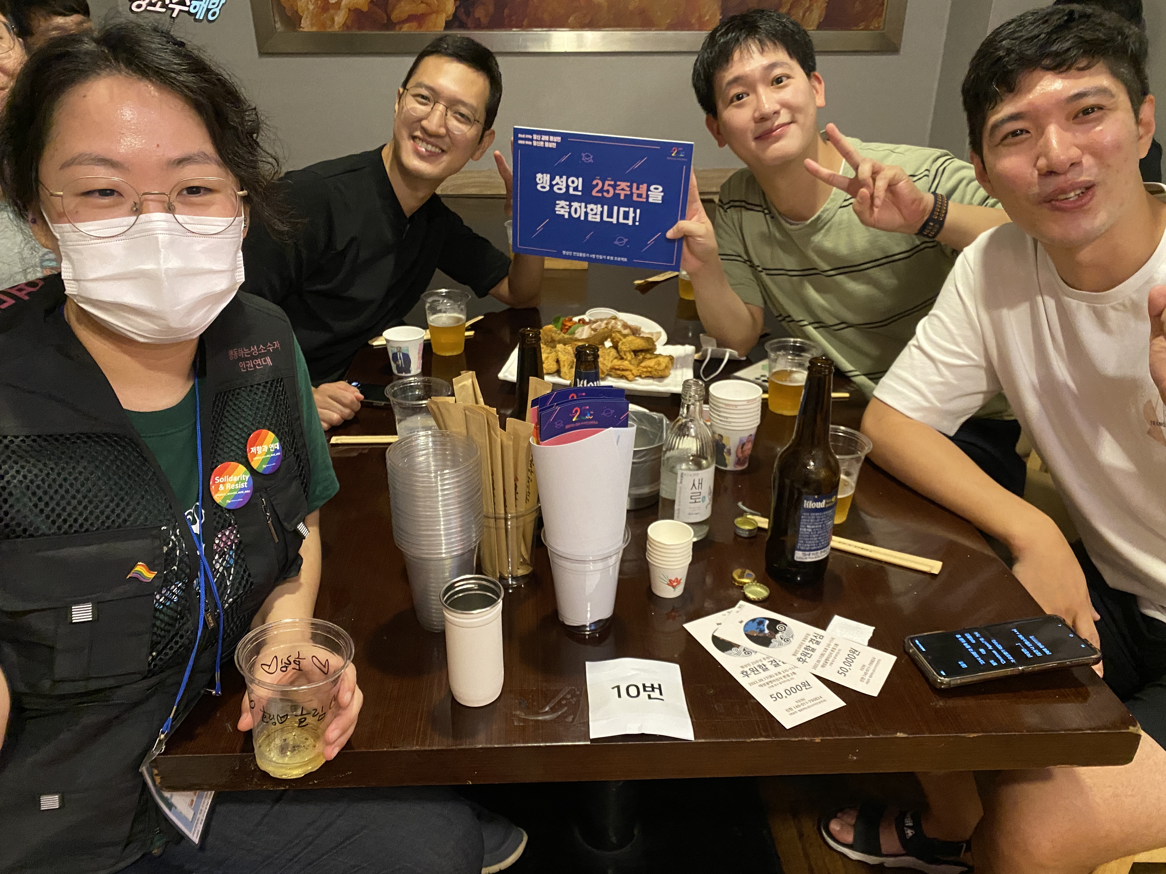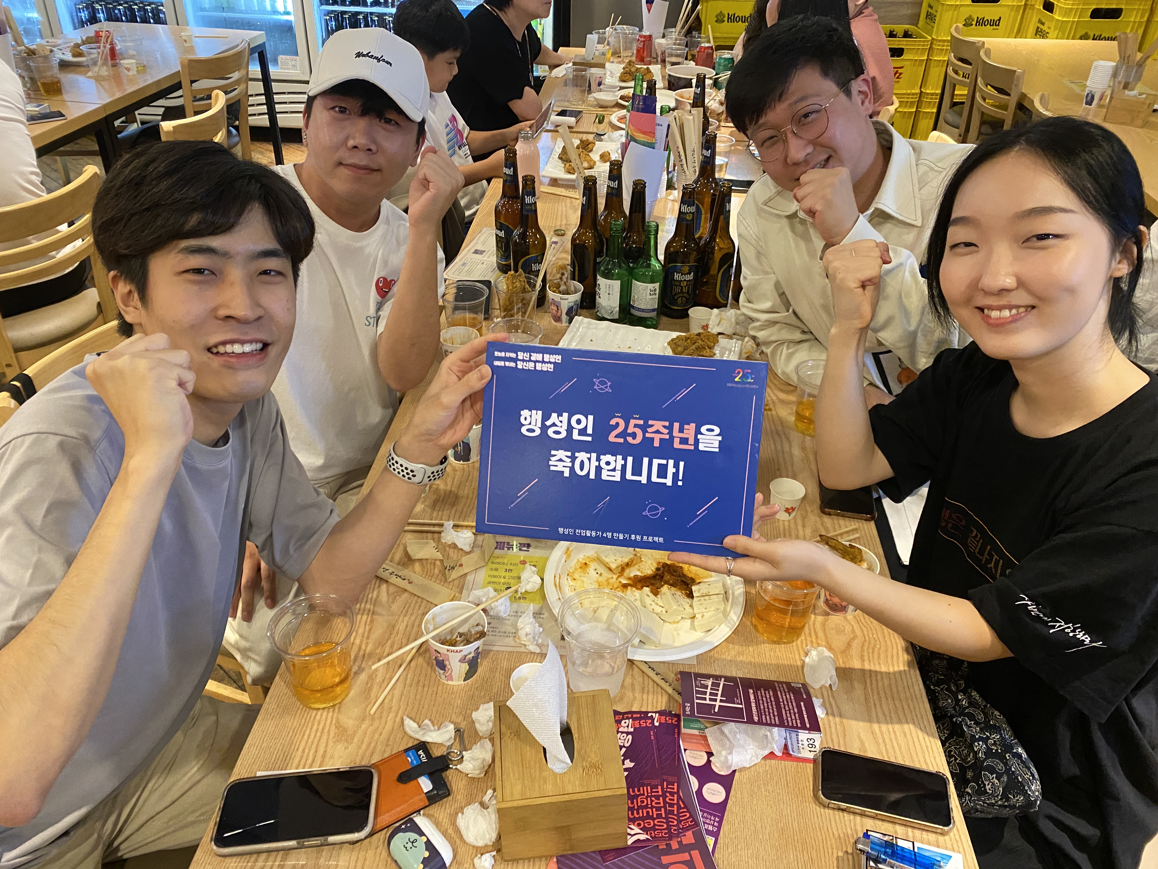 후원주점 당일 미디어TF는 테이블을 돌며 참여하신 분들께 감사 인사를 나누며 인증샷을 남겼습니다. 나중에는 일일이 남기지 못할 정도로 인산인해를 이루기도 했는데요, 그래서 찍지 못한 테이블과 얼굴들도 적지 않았습니다.