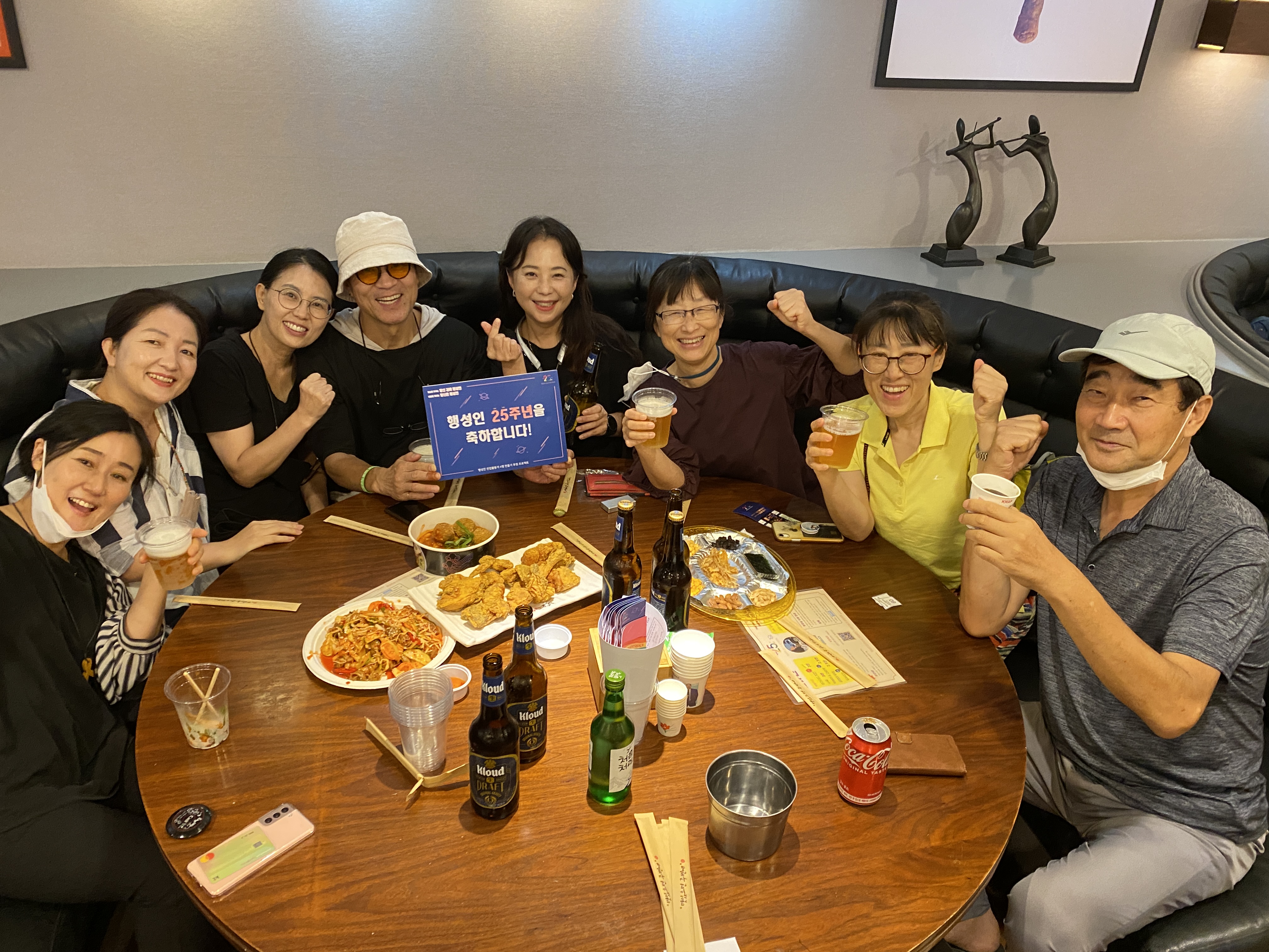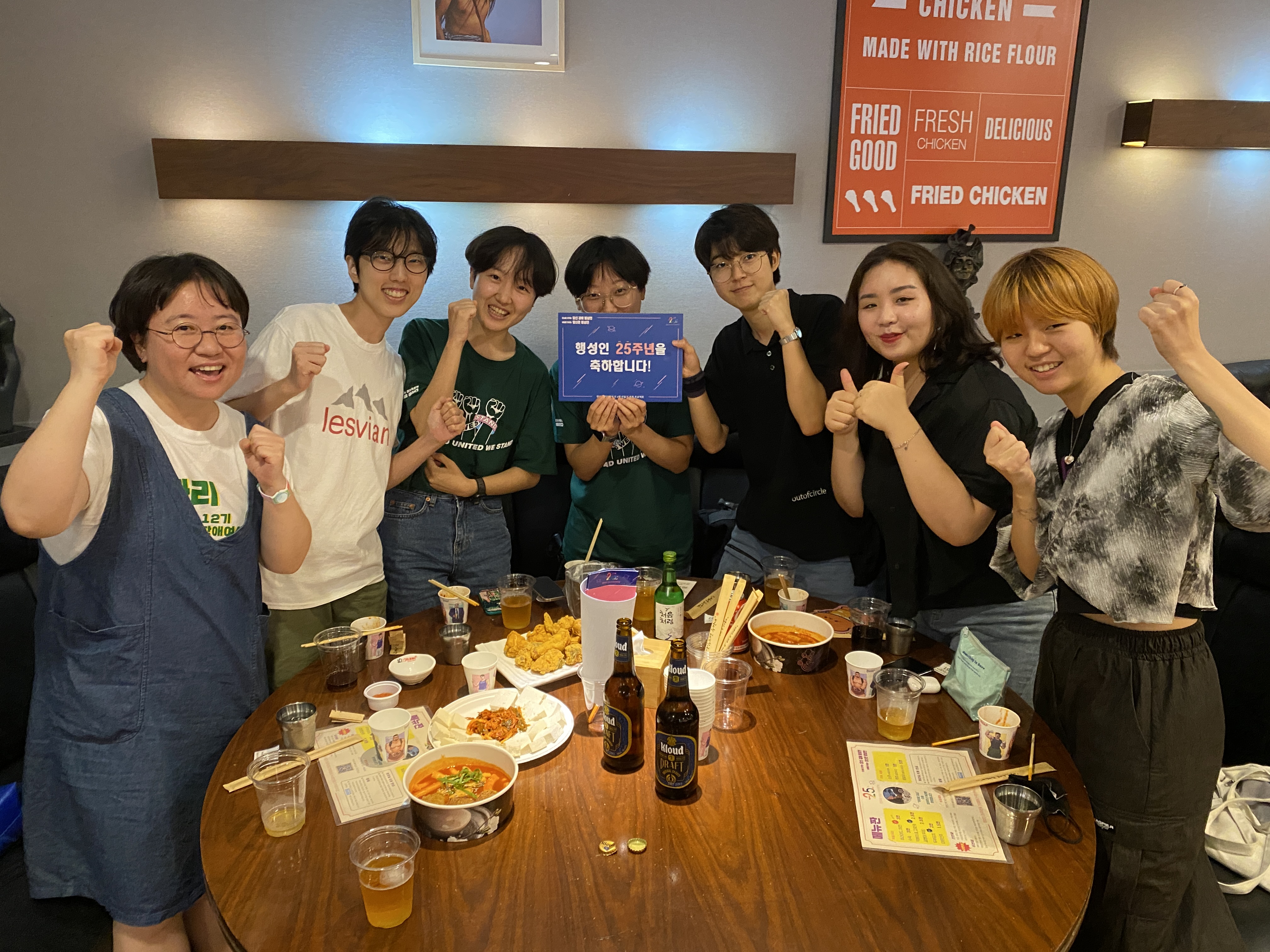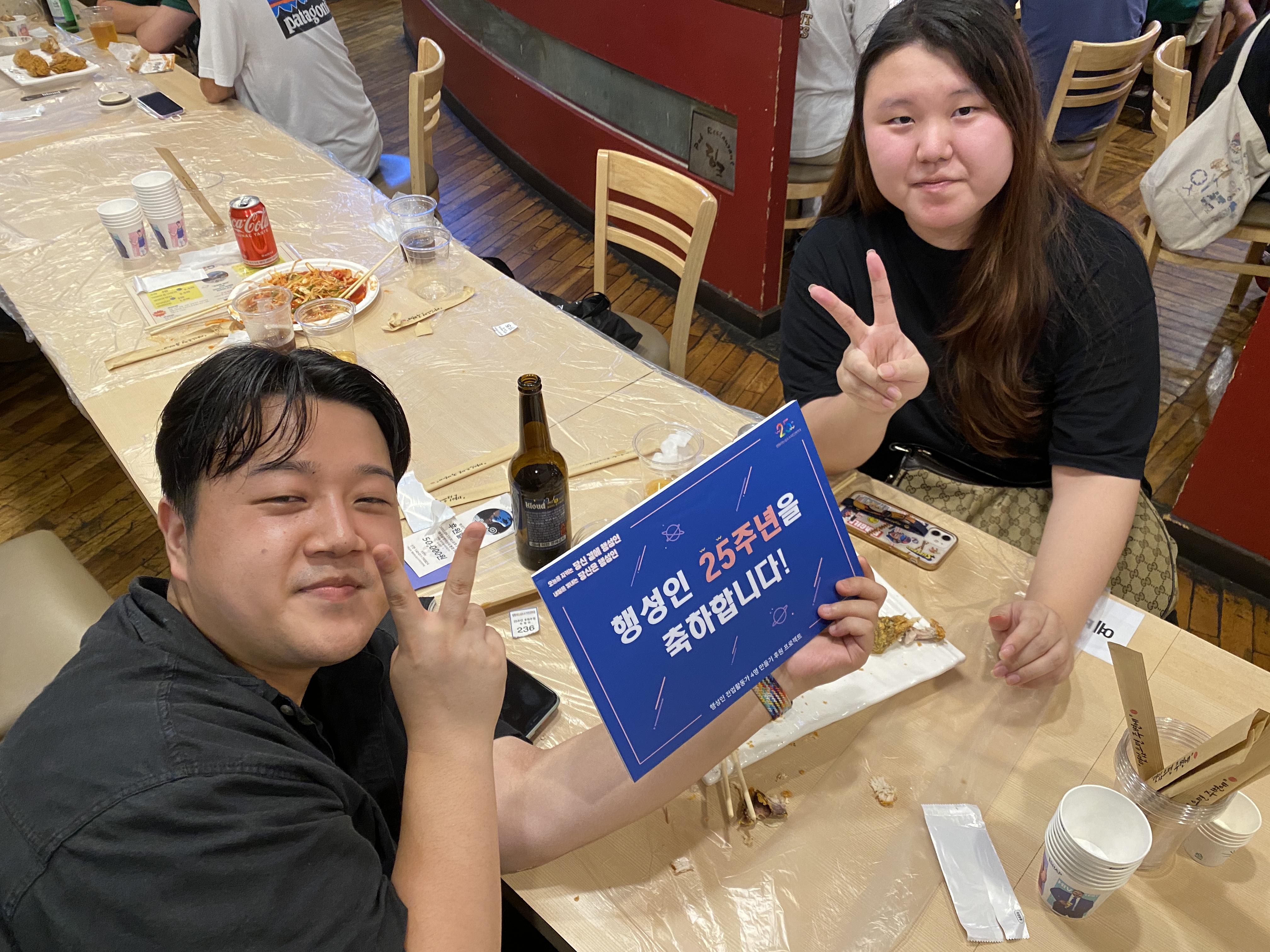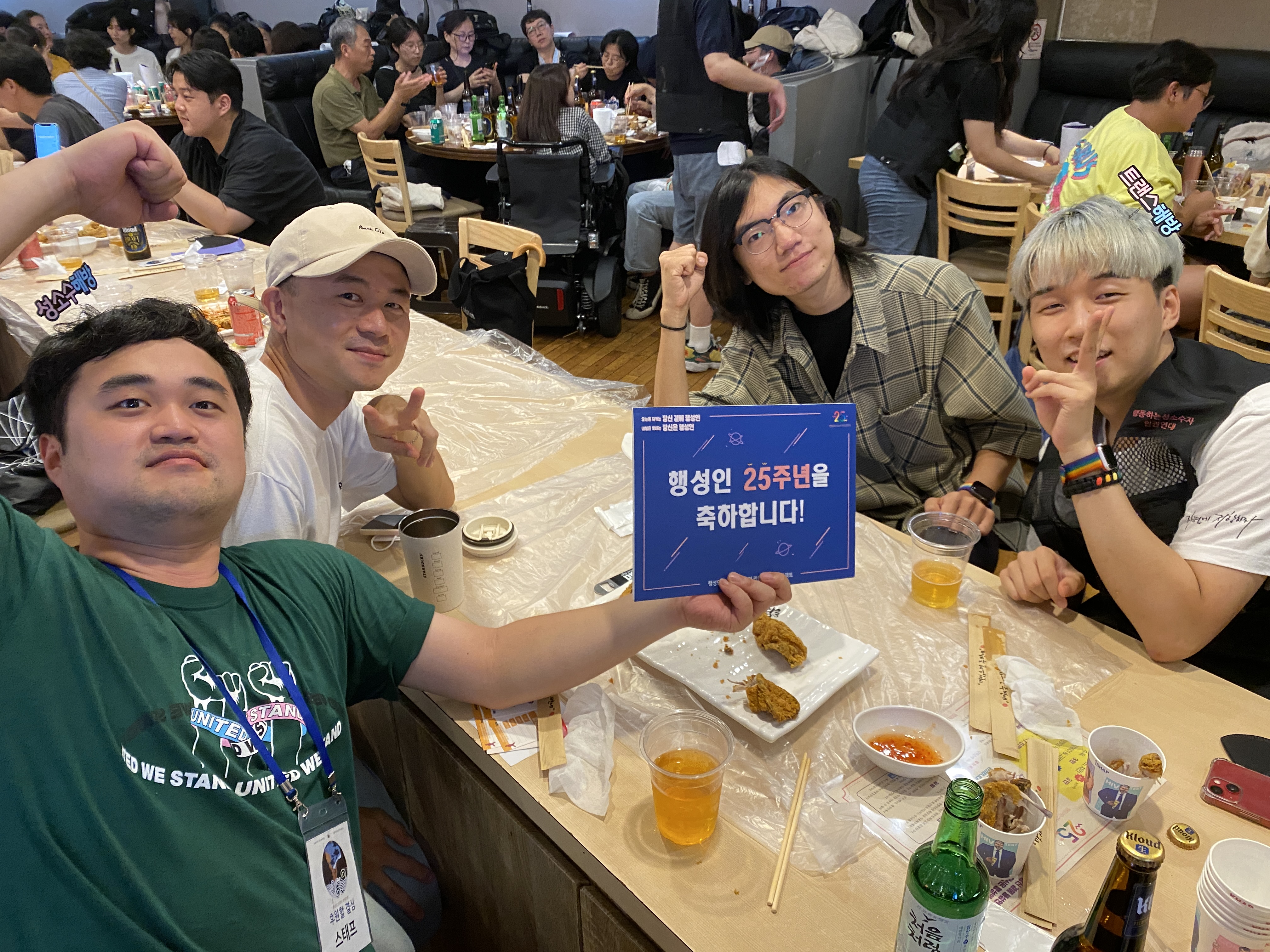 후원주점 당일 미디어TF는 테이블을 돌며 참여하신 분들께 감사 인사를 나누며 인증샷을 남겼습니다. 나중에는 일일이 남기지 못할 정도로 인산인해를 이루기도 했는데요, 그래서 찍지 못한 테이블과 얼굴들도 적지 않았습니다.
