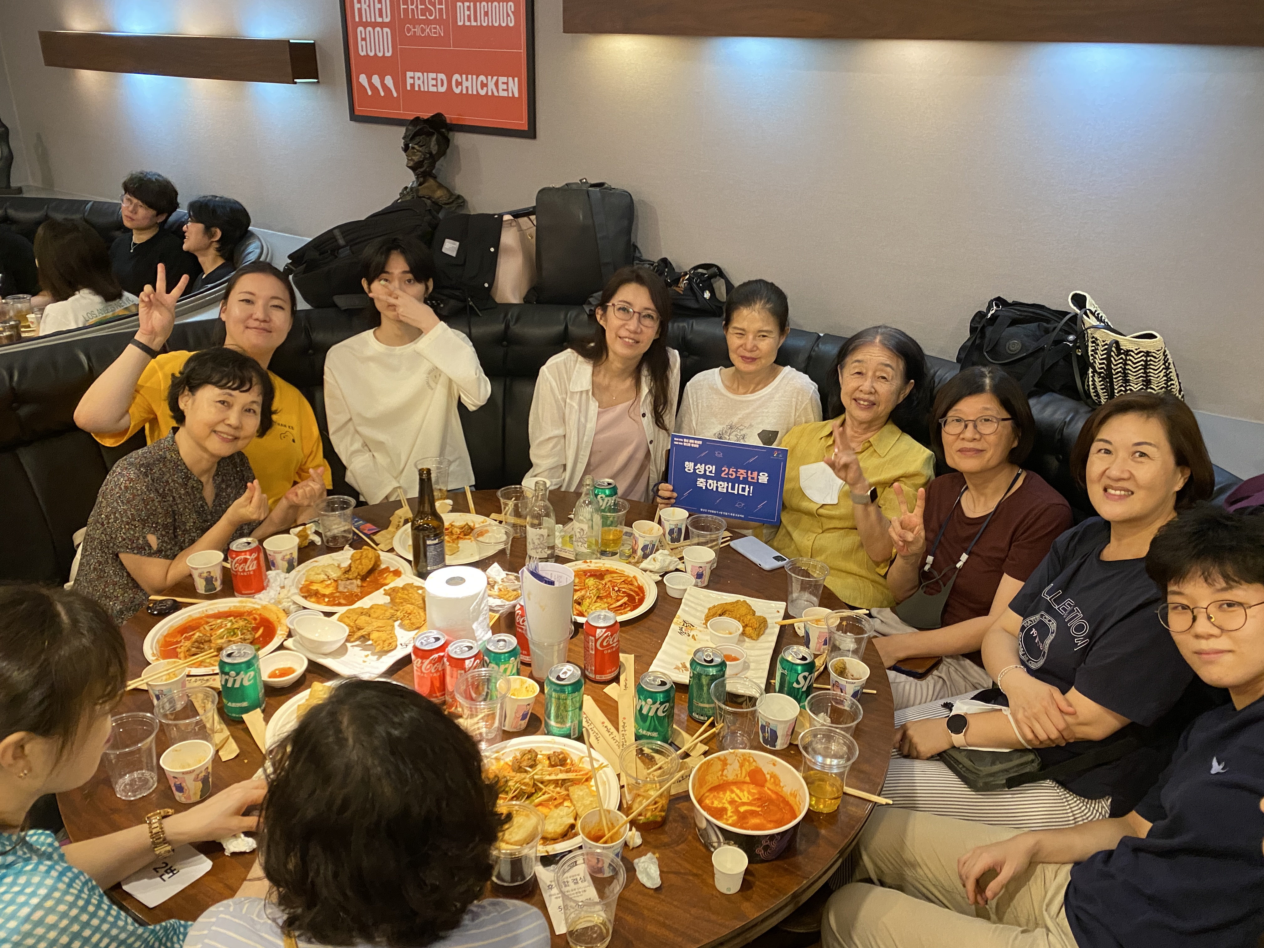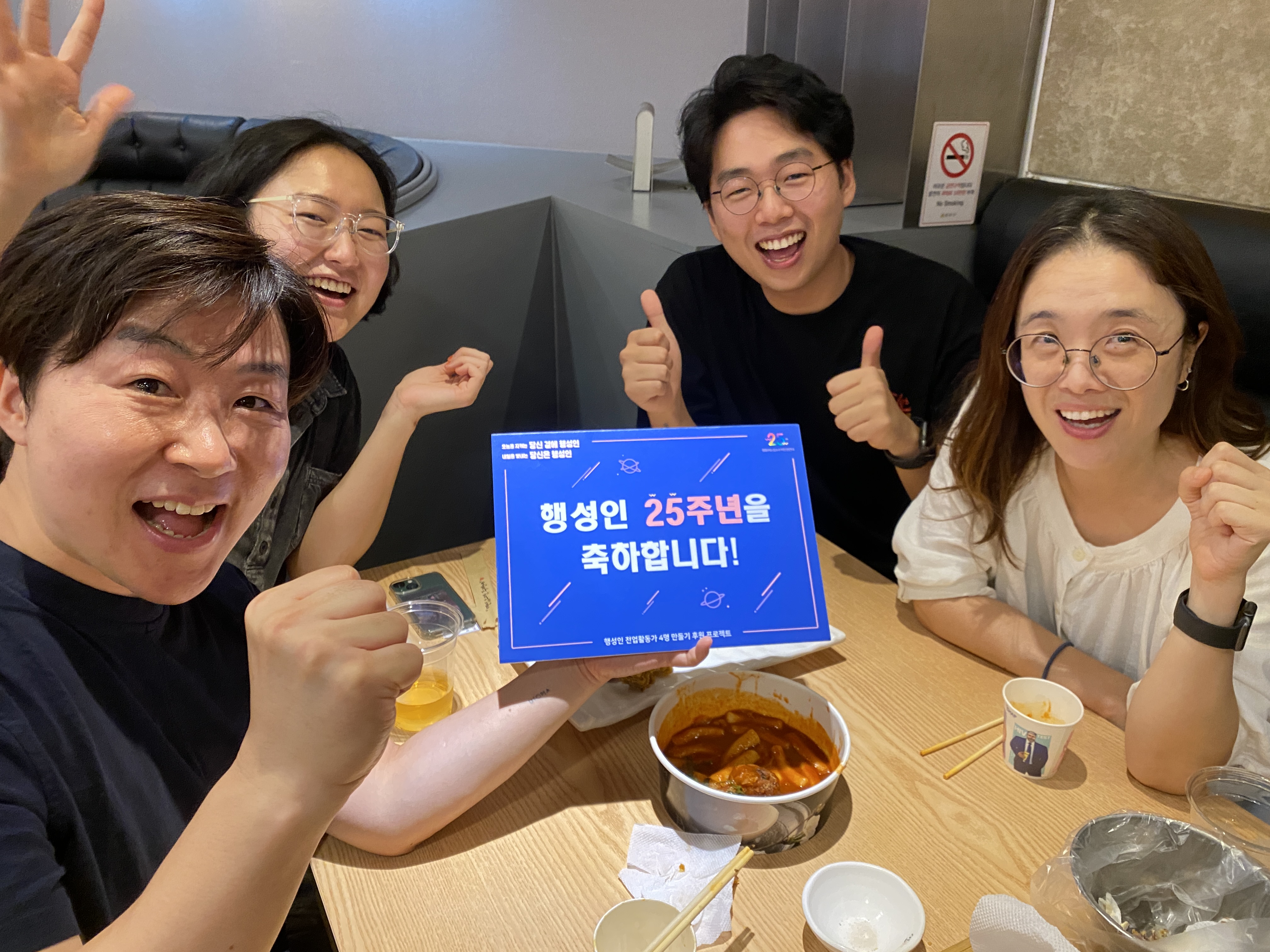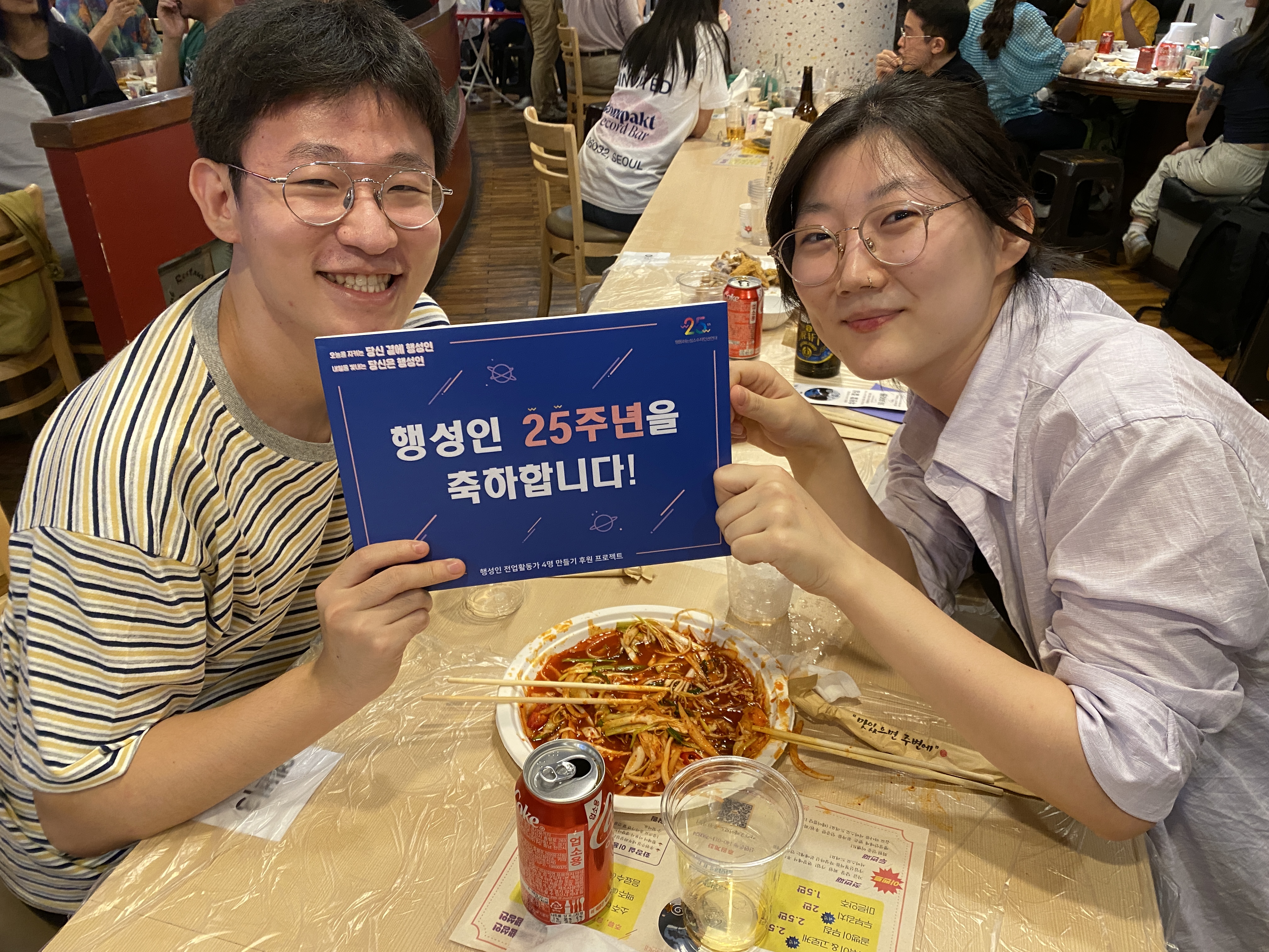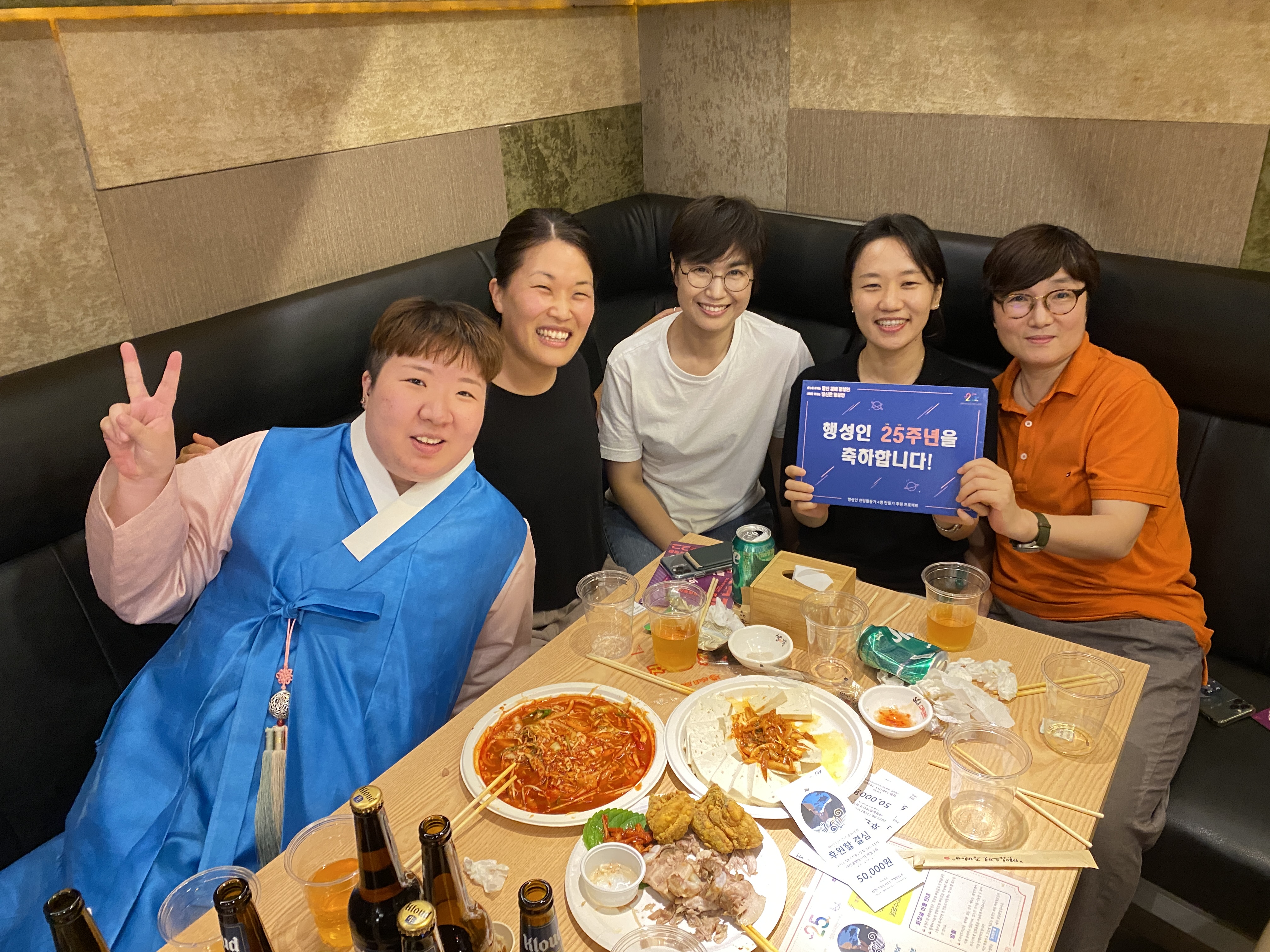 후원주점 당일 미디어TF는 테이블을 돌며 참여하신 분들께 감사 인사를 나누며 인증샷을 남겼습니다. 나중에는 일일이 남기지 못할 정도로 인산인해를 이루기도 했는데요, 그래서 찍지 못한 테이블과 얼굴들도 적지 않았습니다.