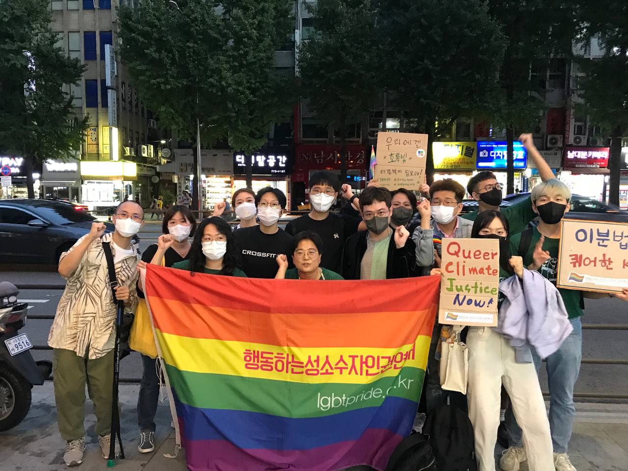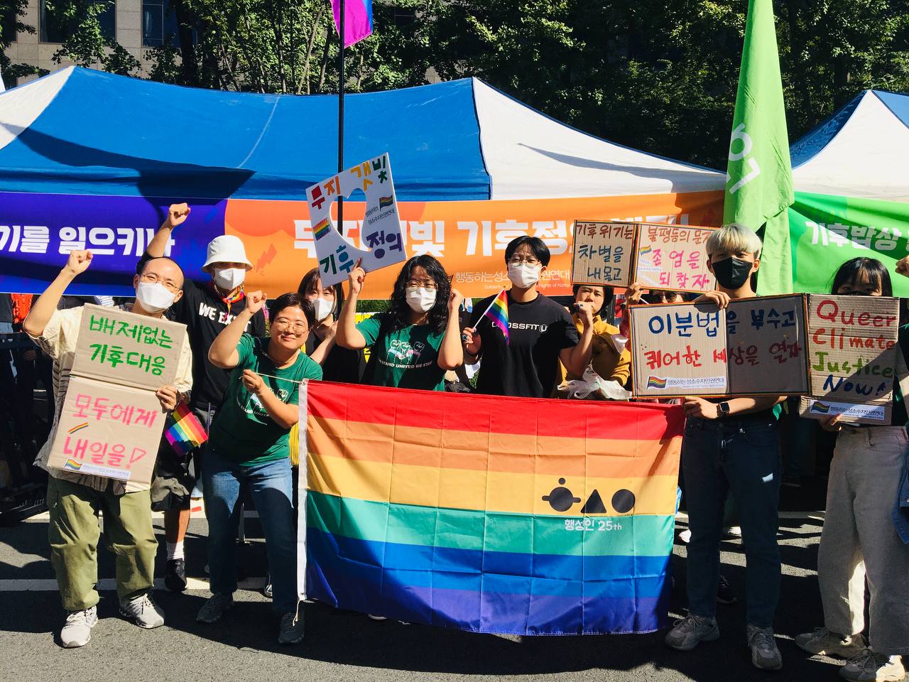 기후위기가 지금 여기를 살고 있는 우리의 문제임을 실감하게 하는 여름이었습니다. 9월 24일, 더 이상 이대로 살 수는 없다고, 3만 5천여명의 사람들이 광장에 모여 기후정의를 외쳤습니다. 어느 때보다 많은 회원들이 함께하며 행성인도 무지개를 띄웠습니다. 지난 회원모임에서 만들었던 구호들을 뽑아 만든 종이박스 피켓을 들고 행진하며 무지갯빛 기후정의를 외쳤습니다.