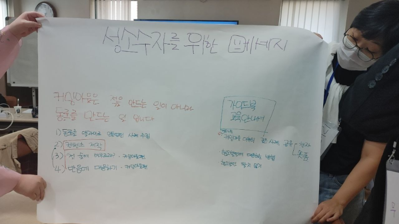 마지막 워크숍에서는 다양한 프로그램이 진행되었습니다. 먼저 첫 시간에는 6주차에서 세운 캠페인의 목표에 맞는 구체적인 액션플랜을 설계해보는 시간을 가졌습니다. 조별로 논바이너리 가시화, 성소수자 학생에게 친화적인 학교 환경 만들기, 민주당의 차별금지법 제정 당론 채택을 주제로 해서 캠페인을 설계하였습니다. 설계한 캠페인은 추후 직접 실행에 옮길 예정입니다.