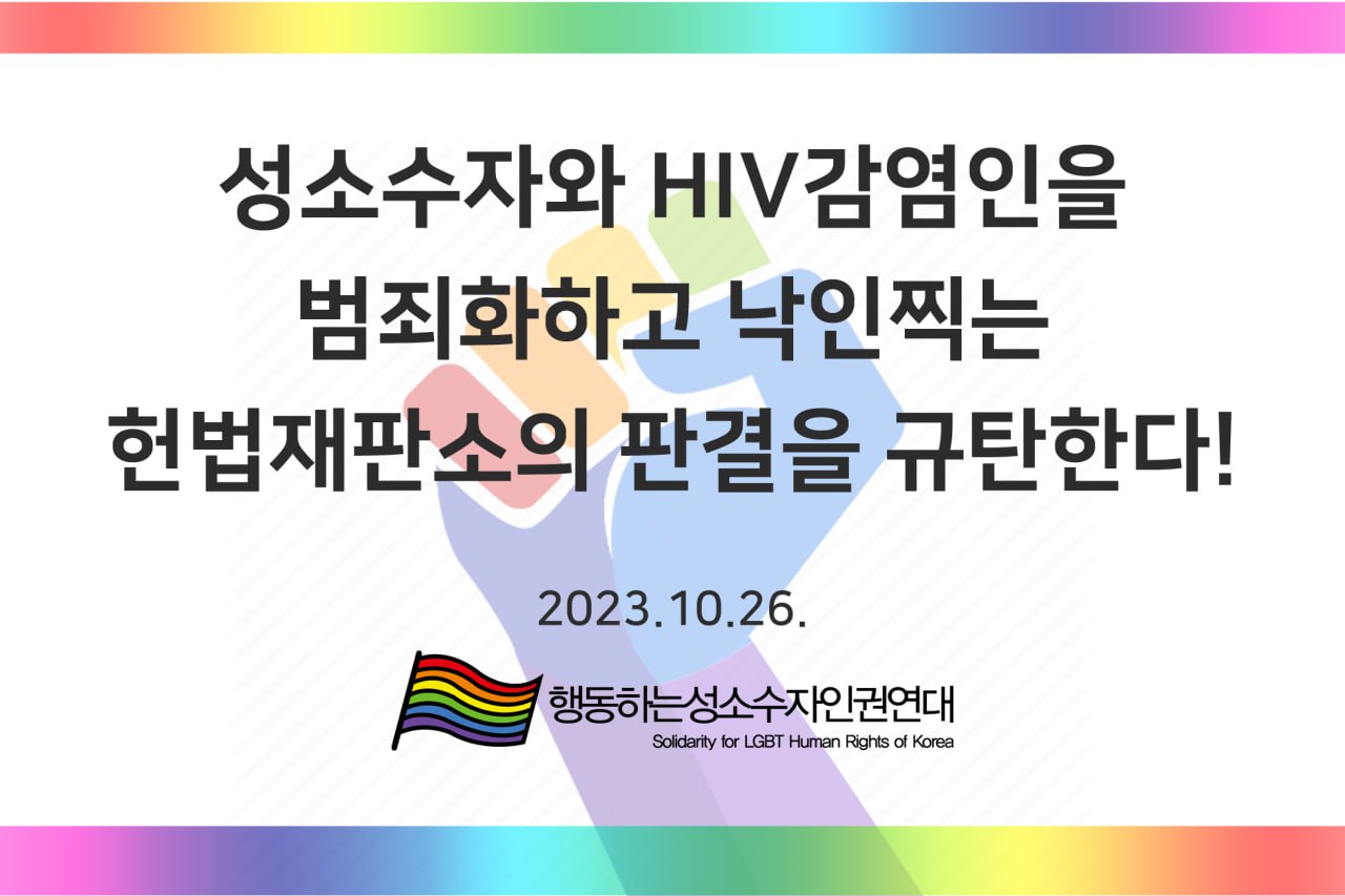 갑작스런 헌법재판소의 판결 예고 소식을 접하면서 살짝 피로감이 몰렸다. 내년에나 나오겠다고 생각했는데, 대응 성명을 준비해야겠구나 생각했다. 보통 이런 상황이면 몇 가지 경우의 수를 준비해야 한다. 합헌과 위헌, 그리고 헌법불합치까지 성명서 초안도 3종으로. 갑작스런 만큼 일정까지 겹쳐 HIV/AIDS 네트워크 대응회의에 참여를 못했다. 대응 논의를 따라갈 수밖에 없었는데 동료 활동가들은 바득바득 3종 성명을 준비하고 결과에 따른 대응 논의까지 마쳤다.
