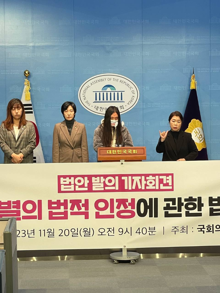 11월 20일 트랜스젠더 추모의 날에 맞춰 장혜영의원실에서는 성별의 법적 인정에 관한 법률안 발의를 예정했습니다. 아직 발의 기준에 필요한 10명의 국회의원 중 한 명을 확보하지 못한 상황이라 발의예정 중이라고 하는데, 빠른 시일 안으로 발의가 이뤄지길 바랍니다.