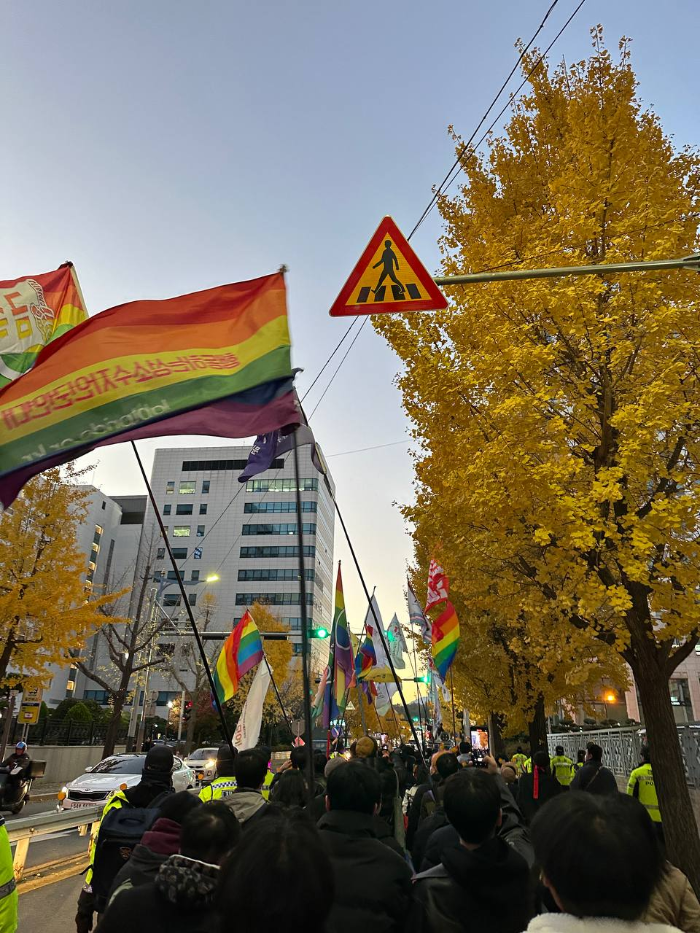서울은 급격하게 기온이 떨어지면서 단풍과 은행잎들이 물들기도 전에 전부 떨어졌는데, 따뜻한 남쪽지역의 행진인지라 샛노란 은행나무 가로수길 아래 늦은 가을을 만끽했습니다.