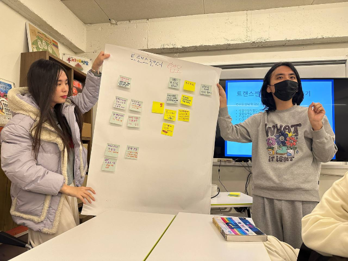 행사에서는 트랜스젠더 주요 의제라고 할 수 있는 성별정정특별법/ 성중립화장실을 비롯한 트랜스친화적 공간/ 트랜스젠더 노동권/ 트랜스젠더 혐오 등에 대해 조별로 하나씩 의제에 대해 최근의 동향과 뉴스를 살피고, 쟁점을 정리하며 과제를 도출하는 시간을 가졌습니다.