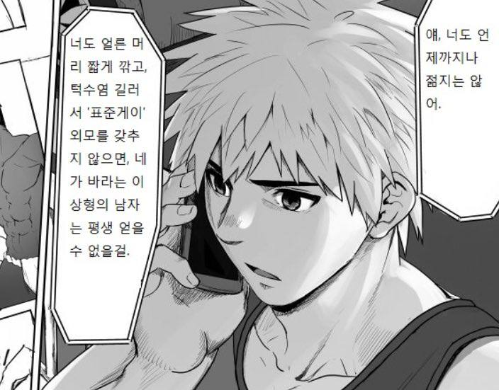 그런 공간에서 소위 '잘 팔리는(섹스 심벌에 가까워 인기가 많은 게이들을 칭할 때 쓰는 말)' 사람들이 자연스럽게 게이 섹스의 상징이 돼가며, 그들이 가진 여러 속성들, 이를테면 짧은 머리, 큰 가슴, 각진 얼굴들이 표준 게이 모형을 규격해나간다. 수능에서 '서연고', 아파트에서 '한강뷰'가 기능하는 표준 신화처럼 커뮤니티 내 표준 규격이 게이들 마음속에 새겨진다. 그렇게 새겨진 이미지는 경쟁과 고난에서 이기고 트로피를 쟁취하도록 게이들을 헬스장과 피부과에 밀어 넣는다. 계속되는 경쟁과 고난에서 탈락자와 포기자는 속출하며, 그들조차 “자기관리를 해야 했다며” 스스로를 패배자로 여긴다. 섹스가 표준화, 규격화돼가며 규정되는 순간마다 소외되는 게이들은 폭증한다. 모든걸 선택할 수 있는 거대한 자유 앞에서 게이들이 소외되기 시작한 것이다.
