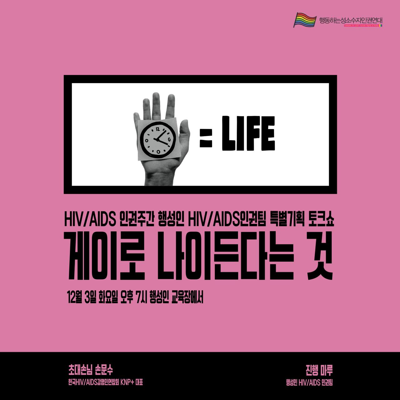 행성인 HIV/AIDS 인권팀 팀원으로서 이런 고민을 팀 내에서 나누다가 중장년 게이/PL 토크쇼를 기획하게 되었다. 토크쇼 손님으로는 한국HIV/AIDS감염인연합회 KNP+ 손문수 대표를 모시고 KNP+가 걸어온 길, PL공동체 사랑방 이야기, 서로돌봄 사업, 나이듦과 섹스에 대해 질문과 답변 형식으로 이야기 나눴다.1