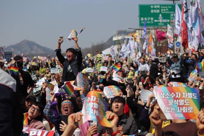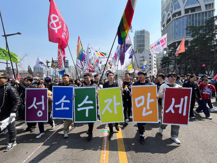 오늘의 이 봄날을 맞이하기까지 지난 4개월간 수많은 성소수자들이 광장에서 자신을 드러내고 민주주의를 함께 지켜냈습니다. 이제는 민주주의의 핵심적인 가치인 자유와 평등, 존엄을 성소수자도 보장받는 사회로 나아가야 합니다. 다가오는 대선에서 성소수자가 계속해서 호명되고, 그리고 그 이후에 만들어질 새정부에서 차별금지법이 제정되고 혼인평등과 성별자기결정권이 실현되는 그런 사회를 정치가 만들길 요구합시다!