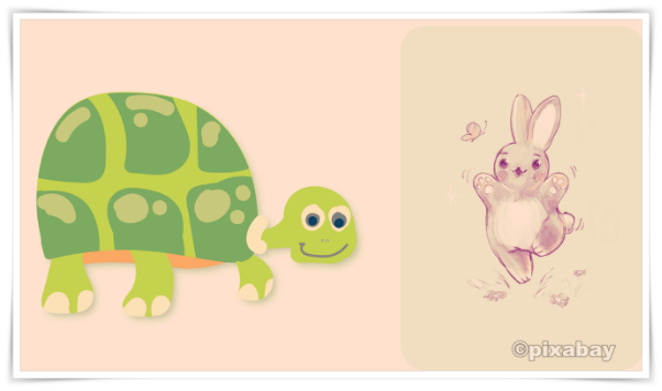 아이가 토끼와 거북이 이야기를 하기 시작했어요. 자기는 토끼하고 엄마는 거북이 하자는 겁니다. 아무래도 이 녀석이 토끼와 거북이의 경주 이야기를 본 모양입니다. 토끼는 무엇이든 빨리해서 이기는 승자, 반대로 거북이는 느릿느릿해서 지는 녀석으로 여겨서 자신은 토끼가 하고 싶은 겁니다.