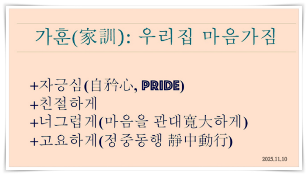 제가 좋아하는 단어를 모아 보니 마음가짐(가훈家訓)의 틀이 짜졌습니다.