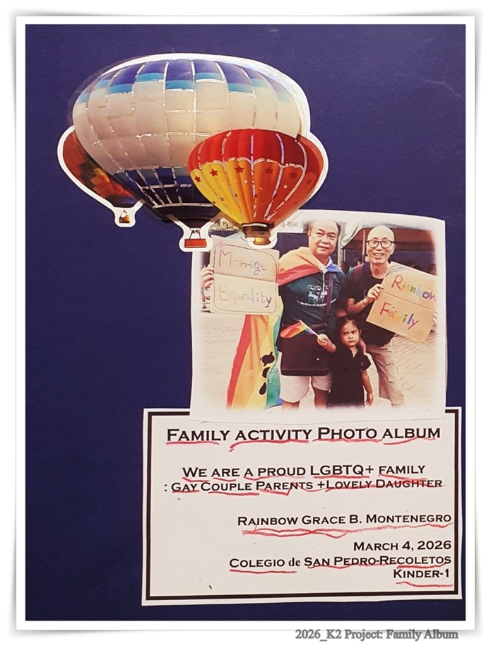 왜냐하면 우리 가정이 퀴어한 가족으로 구성되었다는 사실을 보여줄 수 있으니까요. 즉 레인보우 패밀리의 정체성을 가장 선명하게 드러낼 수 있지요.