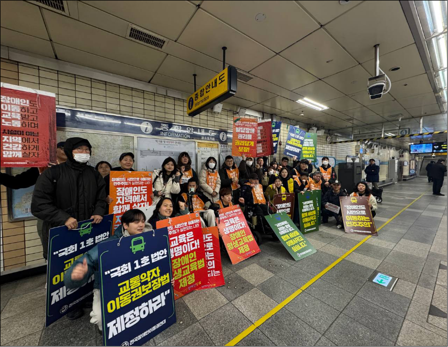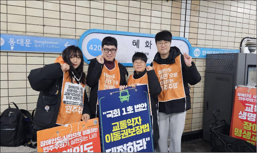 전국장애인차별철폐연대에서는 지방선거 D-120일인 2월 3일부터 지방선거(6월 3일) 전까지 120일 동안 연대단체 및 연대시민과 함께 평일 아침 8시~9시 1시간동안 출근길 아침선전전을 진행하고 있습니다. 선전전에서는 “장애인도 시민으로 이동하는 민주주의 실현”이라는 슬로건 아래 “권리중심공공일자리 중증장애인 해고노동자 400명 원직복직”, “권리중심공공일자리 복원”, “서울시탈시설장애인지원조례 복원”, “서울시장애인이동권 보장”을 외치고 있습니다.