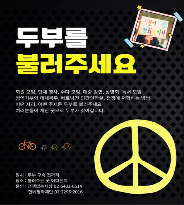 📞문의 : 이용석(02-6401-0514, 전쟁없는세상 활동가), 권현우(한베평화재단 사무처장)