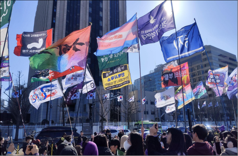 지난 3월 7일, 3.8 세계여성의 날을 기념하며 광화문 서십자각에서 제41회 한국여성대회가 개최되었습니다. 이번 대회의 슬로건은 “빛의 혁명을 완수하라! 성평등이 민주주의의 완성이다 - 모이자 광장으로, 여성주권자의 힘으로!” 이었습니다. 위헌·위법적인 비상계엄을 시도한 대통령을 파면하고 내란을 종식시킨 여성/퀴어들이 다시 모인 자리였습니다. 1년 전 매일같이 나와 대통령 파면 너머 변화를 요구하는 행동들을 기억하면서, 차별금지법 제정과 젠더 폭력 없는 사회를, 노동과 재생산권에서의 실질적 성평등을, 성평등 개헌과 여성의 정치 대표성 확대를, 나아가 전쟁과 폭력이 아닌 돌봄과 평화를 요구했습니다.