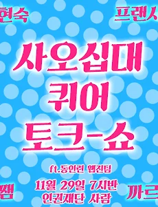 인터뷰어 : 오소리 인터뷰이 : 곱단이, 여름곰, 뮨, 보살님, 삐삐 오소리 : 인터뷰 시작할게요! 먼저 와주셔서 감사하고요. 원래 두 명이서 같이 오기로 했는데 한 분이 사정이 생기셔서 저 혼자 오게 됐네요. 양해 부탁드리고요. 먼저 자기소개 부탁드립니다. 가능하면 성정체성까지 같이 말씀해주세요. 아, 닉네임으로 말씀해주세요! 곱단 : 닉네임은 곱단이고 게이에요. 여름곰 : 어떡하지, 나 닉네임 없는데? 음...제 닉네임은 곰이에요, 곰 오소리 : 이름 말씀하셔도 되고요. 그냥 곰으로 하실래요? 여름곰 : 여름곰! 곱단 : 운치 있다, 여름곰. 여름곰 : 저는 여름곰이고, 양성애자에요. 뮨 : 저는 뮨이고 저는 바이에요. 보살님 : 저는 보살님이고요, 성정체성은 이성애자입니다. 삐삐 : 저는 한신대학교..