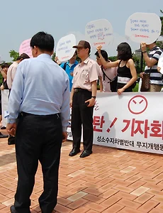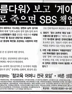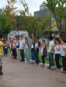 성소수자 차별 혐오95 ‘바른 성문화를 위한 국민연합’과 ‘참교육 어머니 전국모임’을 강력히 규탄한다! 동성애혐오 조장하고 HIV/AIDS 감염인에 대한 차별 부추기는 ‘바른 성문화를 위한 국민연합’과 ‘참교육 어머니 전국모임’을 강력히 규탄한다! 근래 보기 드물게 경악스러운 신문광고를 접하고 분노를 금할 길이 없다. 9월 29일 ‘바른 성문화를 위한 국민연합(이하 바성연)’과 ‘참교육 어머니 전국모임’이라는 단체가 조선일보에 동성애를 다루고 있는 SBS드라마 를 비난하고 동성애혐오를 조장하며 에이즈에 대한 편견을 강화하는 내용의 광고를 실었다. 이 광고는 일일이 반박해야 하는지에 대한 회의가 들 정도로 반인권적이고 몰상식한 허위사실로 도배돼 있다. 그러나 지난 5월 ‘동성애허용법안반대국민연합’이 조선일보에 게재한 동성애혐오조장 광고에 이어 실린 이 광고가 노골적으로 사회적 다양성을 말살하는 것일뿐더러 안.. 2010. 10. 1. 동성애 혐오없는 세상에 살고싶습니다! 2010년 9월 13일 한겨레 신문 4면 하단에 아래와 같은 광고가 실렸습니다. 지난 몇 달 전 동성애허용법안반대국민연합이라는 단체가 주요 일간지에 낸 '며느리가 남자라니!' 광고에 맞서고 동성애를 혐오하는 세상에 맞서기 위한 활동이 '열림'을 통해 진행되었습니다. 2010 퀴어퍼레이드에서부터 시작된 신문광고를 위한 모금이 213명의 개인과 32개 단체의 참여로 만들어졌습니다. 그 결실.... 앞으로 동성애 혐오에 맞선 활동을 계속 이어나가겠습니다. 모금에 동참해주신 분들께 진심으로 감사드립니다. 2010. 9. 14. 키스 해링 액숀 데이!! 지난 8월 28일 성소수자 차별반대 무지개행동, 반차별 공동행동, 차별 없는 세상을 여는 기독인 연대와 함께하는 여러 단체 회원들을 비롯해 성소수자들과 성소수자 인권을 지지하는 사람들이 소마 미술관 앞에 모였습니다. 그 이유는? 키스해링전시는 가능? 동성애자 인권행사는 불허? - 국민체육진흥공단의 이상한 소마미술관 출입원칙! 국민체육진흥공단에서 동성애 인권 행사를 불허했었기 때문입니다. 키스 해링은 동성애자 그리고 HIV/AIDS 감염인으로 살아가며 많은 작품에서 차별을 반대하는 그림을 남겼습니다. 근성과 에너지로 호흡하는 작가 키스해링 키스 해링의 정신을 이해하지도 못하는 국민체육진흥공단에 항의하기 위해 그리고 키스 해링이 어떤 삶을 살았는지 제대로 알리기 위해 소마 미술관 앞으로 모였습니다. 키스 해.. 2010. 9. 8. 키스해링전시는 가능? 동성애자 인권행사는 불허? - 국민체육진흥공단의 이상한 소마미술관 출입원칙! 올림픽공원 내 소마미술관에서 열리는 키스 해링(KEITH HARING) 전시회에 7월10일까지 2만 명 정도의 관람객이 다녀갔다고 한다. 가족과 연인이 즐기는 문화데이트로 각광을 받고 있는 키스 해링 전시회는 특별한 일이 없는 한 9월5일까지 계속될 것이다. 2만 명이 다녀가기 하루 전 7월9일 성소수자 인권활동가도 올림픽공원을 찾았다. 하지만 키스 해링 전시회 근처도 가보지 못했을 뿐만 아니라 마치 불청객 다루듯이 우리 앞을 가로막던 이들도 있었다. 바로 국민체육진흥공단 직원과 관계자들이었다. 7월9일. 올림픽공원 햇빛이 강하게 내리쬐는 아침 10시. 8호선 몽촌토성역에 내렸다. 지하철을 나오자 황량한 공원입구가 바로 보였다. 그 전날까지 기자회견문을 준비하느라 충분한 잠을 청하지 못해서인지 몰라도 지.. 2010. 8. 5. '동성애 혐오를 조장하는가? ' 맑시즘 2010 강연 참가기 지난 7월 22일부터 25일까지 고려대학교에서는 ‘다함께’가 주최한 ‘맑시즘 2010’이 열렸다. 그리고 예년과 다름없이 동인련의 많은 회원들이 이 행사에 참석했다. ‘예년과 다름없이’ 참여했지만, 올해 우리에게 맑시즘은 예년과는 사뭇 다른 좀더 특별한 의미가 있었다. 드라마 ‘인생은 아름다워’가 방영되면서 성소수자를 향한 이해의 시선이 전보다 한층 늘어나긴 했지만, 한편으로는 성소수자에 대한 공격 또한 그만큼 거세어졌기 때문이다. 동성애에 대한 사회적 논쟁이 뜨거워져서 일까? 온몸을 핥고 지나가는 듯한 무더위가 계속되는 날이었음에도 동성애 강연이 있었던 강의실에는 생각보다 많은 사람들이 모여들었다. 60명 정원의 강의실에 거의 두 배에 달하는 숫자의 사람들이 찾아왔기 때문에 일부 참가자들은 안타깝게도 .. 2010. 8. 5. 모두의 인권이 존중받는 학교를 현실로! - 서울시 학생인권조례 제정운동을 지지하며 요즘 학생인권조례가 교육 핫이슈다. 학생인권조례 제정을 공약으로 내건 진보교육감 취임 이후 조중동 등 보수 언론들과 보수 단체들은 연일 학생인권조례를 공격하고 있다. 한편에서 전교조와 청소년인권단체들을 비롯한 시민사회운동진영은 학생인권조례제정운동본부를 구성해 학생인권조례 만들기에 나섰다. 동성애자인권연대도 운동본부의 일원으로 참여하고 있다. 학생인권조례가 왜 중요한지, 특히 우리 성소수자들에게는 어떤 의미를 갖는지, 나아가 성소수자들이 안전하고 행복한 학교와 교육은 어떻게 가능할지도 함께 고민해봤으면 한다. 지난 6.2 교육감 선거에서 진보 후보들의 대거 당선은 오늘날 학교 