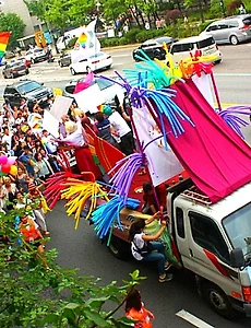 퀴어퍼레이드41 육아#27. 아이 손 잡고 달려! 퀴어퍼레이드 행성인의 오랜 회원인 여기동님이 필리핀에서 안부를 전합니다. 2015년 한국에서 결혼식을 하고 남편의 나라로 가서 살림을 꾸리는 여기동 님은 딸 '인보'를 입양하여 육아일기를 쓰고, 최근에는 성소수자 연구들을 리서치하며 공부에 박차를 가하고 있습니다. 여기동(행동하는성소수자인권연대) 요즈음 요 녀석: 눈치도 늘고 고래고래 소리도 지르고 아이가 세 살 하고도 두 달이 되었습니다. 요즘 요 녀석은 기억력, (엄마와 아빠가 무엇을 좋아하고 싫어하는지를 가려내는)눈치력, 조금씩 단어 수가 늘어나는 문장력 등에서 큰 변화를 보여줍니다. 지난 5월 아이의 생일 잔치를 마치고 떠나시는 할머니를 버스 터미널에서 배웅해 드렸어요. 이걸 기억하여 버스터미널을 지나갈 때 마다 ‘할머니 할머니 버스’라고 말합니다. 그.. 2024. 7. 28. [회원 에세이] 거리에 서는 일 - 2024년 서울퀴어퍼레이드에 부쳐 남웅(행성인 미디어TF) 미리 알리지만 이 글은 올해 서울 퀴어문화축제 퍼레이드(이하 서퀴) 행성인 부스를 총괄하며 미리 쓰는 후기...를 쓰려다 변질된 개인의 이야기다. 1 애석하지만 나에게 퀴퍼는 일이다. 소위 ‘퀴퍼뽕’이라는 건 남들이 그렇다니까 아는 거지 내가 향유해온 감정은 아니다. 경험이 일천할 때도 퀴퍼는 신기해서 나갔다가 사람구경 실컷 하고 돌아온 자리다. 그것이 활동을 시작하고부터는 한 해 활동의 칠부 능선을 오른 표지처럼 되었다. 말하자면 매년 달력사업의 정점이 서퀴다. 과장을 조금 보태면, 2분기를 시작할 즈음부터 디데이만 보고 질주하는 이들이 있다. 이날만은 기필코 연차에 휴가까지 내면서 차량과 코스튬 회의에 전야제 파티까지 한다. 내가 아는 서울친구 몇몇은 하루 전날 근처 .. 2024. 5. 26. [활동가 연재] 상임활동가의 사정 기획의 말2024년 한 해 동안 '상임활동가의 사정' 연재를 시작합니다. 행성인 네 명의 상임활동가들은 종횡무진하며 단체 안팎에서 활동을 하는데요, 한 달 동안 어떤 활동을 해왔는지, 무엇을 보고 어떤 것들을 고민하고 있는지 함께 만나봅시다. 지오5월 주말의 시작과 끝을 야외 운동을 하며 보냈습니다. 4일 토요일엔 여성마라톤대회에 참가했고 26일 일요일엔 풋살 경기를 뛰었어요. 마라톤 대회에는 개인으로 신청해서 참여했는데 행성인 회원들을 정말 많이 만났어요. 행성인 회원 뿐만 아니라 다른 단체 활동가들도 많이 만나서 마치 활동가대회에 온 것같았어요. 내년엔 행성인으로 단체 신청을 하고 회원들과 달리기도 하고 끝나면 돗자리 깔아놓고 도시락 먹으며 아침 소풍 온 것처럼 즐겨보고 싶어요. 행성인 운영위원 .. 2024. 5. 26. [퀴어 여행기] 대만 프라이드에서 맨땅에 헤딩하기 김민지(행동하는성소수자인권연대) 대만에 다녀온 것은 올해가 5번째다. 2015년에 처음 갔으니 코로나를 감안해도 2년에 한 번씩은 꼭 방문한 셈이다. 처음 방문했던 2015년과 지금 사이 대만에서는 동성혼이 법제화되었고, 훨씬 다양한 퀴어들이 전면에 나서는 것이 보인다. 9년은 꽤 길어 심지어 야시장의 유행 메뉴도 처음과는 완전히 달라졌다. 반면 전혀 달라지지 않은 것도 있다. 시먼홍러우 뒷길, 거대한 무지개가 걸린 노상 술집들은 그 때나 지금이나 전혀 변한 것 없어 이제는 정겹기까지 하다. 대만에 여러 번 다녀가며 2015년 커밍아웃 하지 않은 친구와 함께 여행 할 때를 제외하고는 갈 때마다 늘 이런저런 퀴어 업소에 기웃거렸으나, 이번은 그 중에서도 특별했다. 바로 매년 10월 마지막 주에 열리는 대만.. 2023. 11. 23. 축제를 즐길 때는 몰랐던 초보 실무자의 좌충우돌 첫 퀴퍼 준비기 지오 (행동하는성소수자인권연대 웹진기획팀) 한 달이 훌쩍 지난 지금 돌아보면 지나치게 긴장을 많이 했던 하루였다. 당일만이 아니라 퀴퍼 준비과정에 있던 한 달 내내 긴장과 막막함 사이를 오르내렸었다. 거의 모든 실무를 총괄해야 하는 위치인데 무엇부터 시작해야할지 몰랐고, 어떤 과정들이 펼쳐져야 하는지 감이 없었고, 사람들 사이에 소통은 어떻게 가능한지, 그 안에서 내 역할은 정확히 무엇인지 구체적으로 잡히지 않았다. 예전 회의록, 실무분담 내용 등 자료를 찾아보면 시간표, 역할 분담, 필요한 물건, 계획 등이 정갈하게 정리되어 있다. 참으로 매끄럽다. 준비과정에서 나에게 주어진 첫 일은 그 정갈한 언어들 사이의 행간을 상상하는 일이었다. 그렇게 정리된 말들의 행간에는 얼마나 많은 과정들이 생략되어 있단 .. 2019. 7. 8. 불온한 우리의 연대로 평등의 무지개를 띄우다 - 차별금지법 제정을 위한 행성인 X 차제연 공동 행진단 참여 후기 사월(차별금지법제정연대 전략조직팀) 2019년 6월 1일 서울퀴어문화축제가 열렸다. 서울 곳곳은 다양한 색의 깃발이 나부끼며 불평등과 차별에 맞서는 수만 명의 사람들로 인산인해를 이루었다. 행사의 백미인 퀴어퍼레이드에는 행동하는성소수자인권연대와 차별금지법제정연대가 ‘차별금지법 제정’을 주제로 환상의 꼴라보를 이루어 행진했다. 여기에는 15개의 시민사회인권단체가 공동행진단으로 함께 했다. 공동행진단이 거리를 나서기까지 많은 과